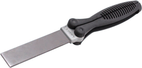 Lansky Folding Diamond Paddles offer single or double-sided full surface diamond sharpeners in one compact unit. Both double-sided models have the same folding convenience and contoured rubber over-molded handles and are the same size as the single-side folding diamond paddles. These are more robust and durable than previous models with a substantial improvement in grip ergonomics. Made in USA.