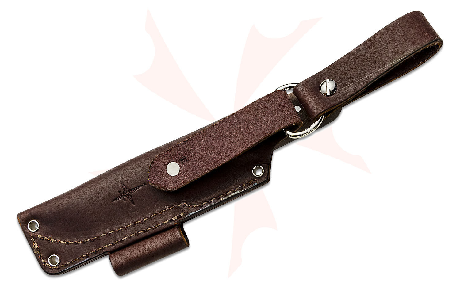 The knife would not be complete without a sheath, and the included JRE Industries leather sheath makes it easy to carry the Bushcrafter HC. Retention is good, and there is a ⅜" diameter leather loop on the side to facilitate easy carry of a firesteel. Additional rivets allow versatile lashing options. The sheath can be used with the included dangler attachment for drop leg carry. If you prefer your knife to carry higher on the belt, you can remove the dangler, or simply fold it underneath and out of the way.