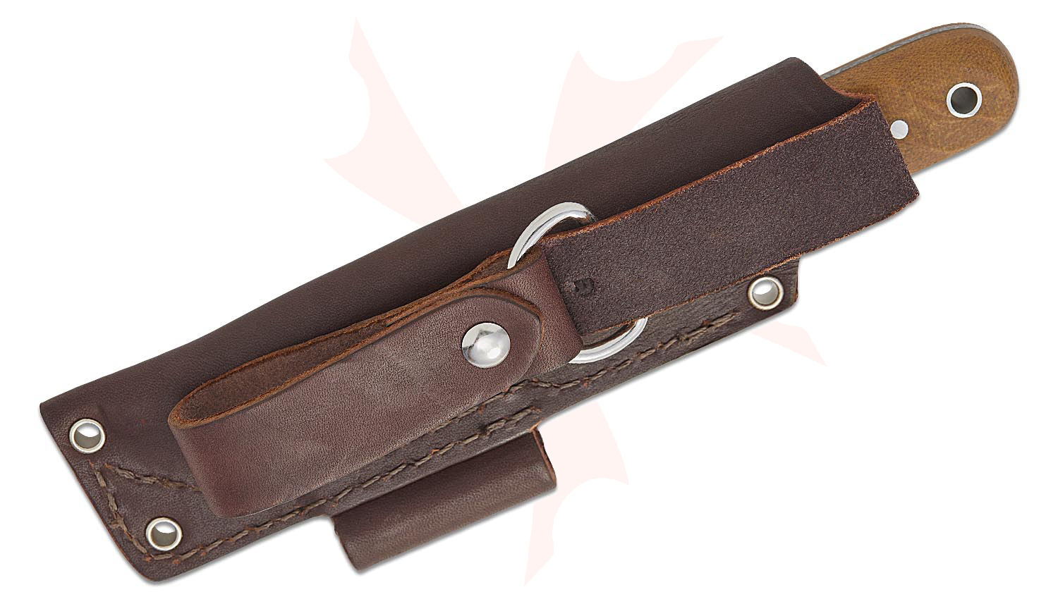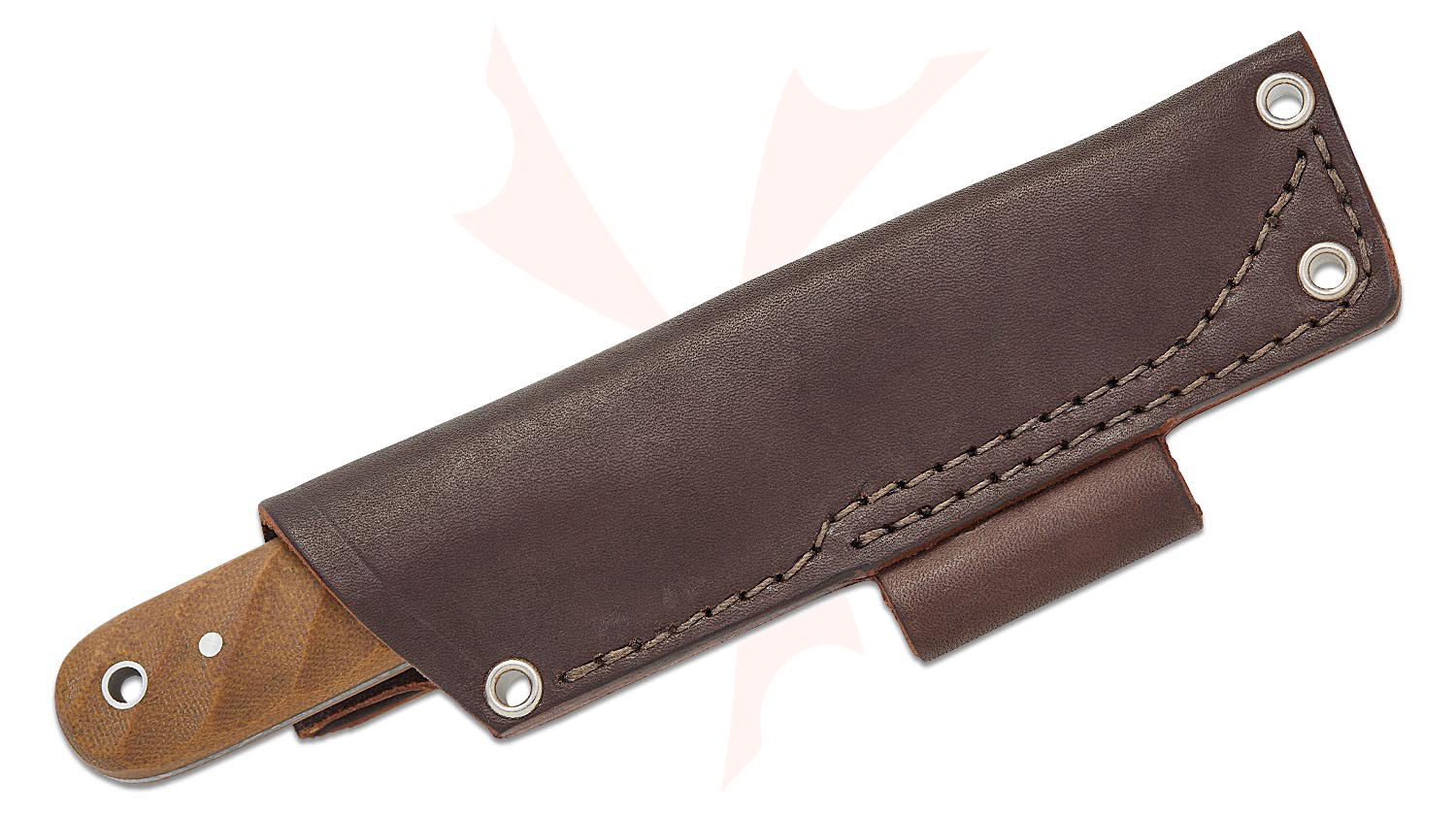 L.T. Wright Bushcrafter HC Fixed Blade Knife 3.95" Saber Grind 1075 Spear Point Blade, Twisted Natural Canvas Micarta, Leather Sheath