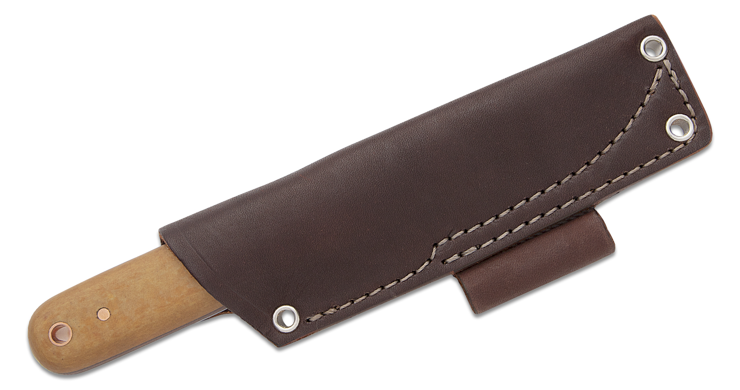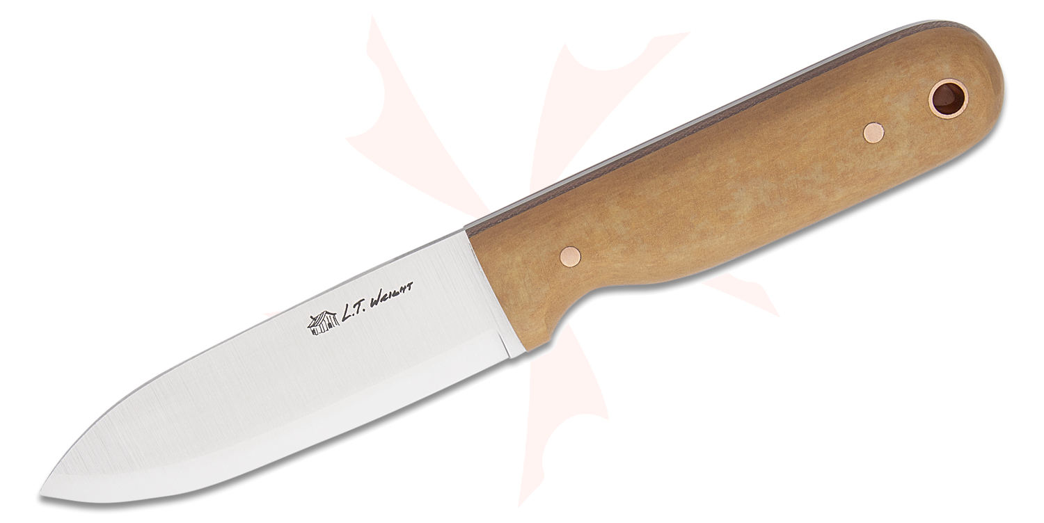 L.T. Wright Bushcrafter 3.95" CPM-MagnaCut Fixed Blade Knife, Scandi Grind, Maple Paper Micarta, Leather Sheath