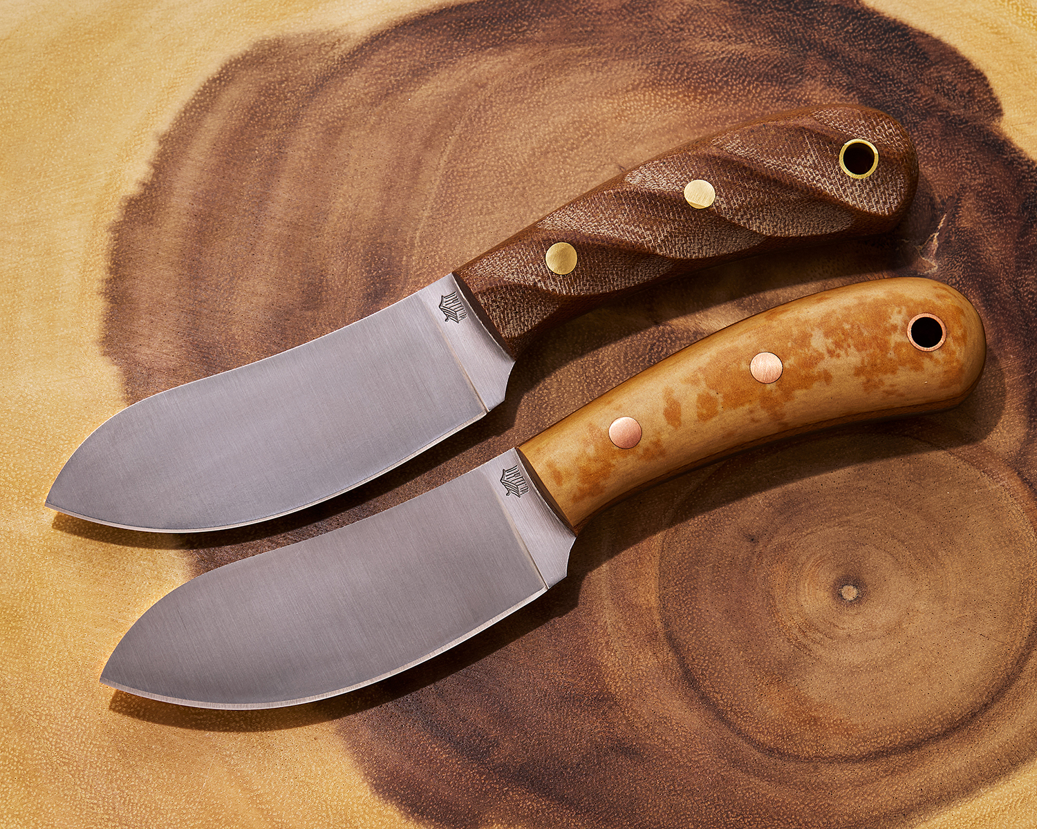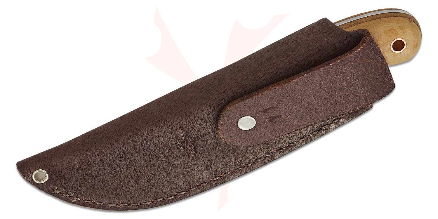 L.T. Wright Camp MUK Fixed Blade Knife 3.6" A2 Flat Ground Nessmuk Skinner Blade, Maple Valley Richlite Handles with Natural Liners, Leather Sheath