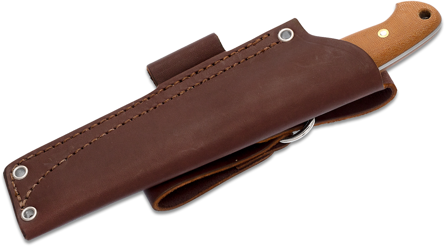 L.T. Wright Trekker 4.75" AEB-L Fixed Blade Knife, Natural Matte Canvas Micarta, Leather Sheath