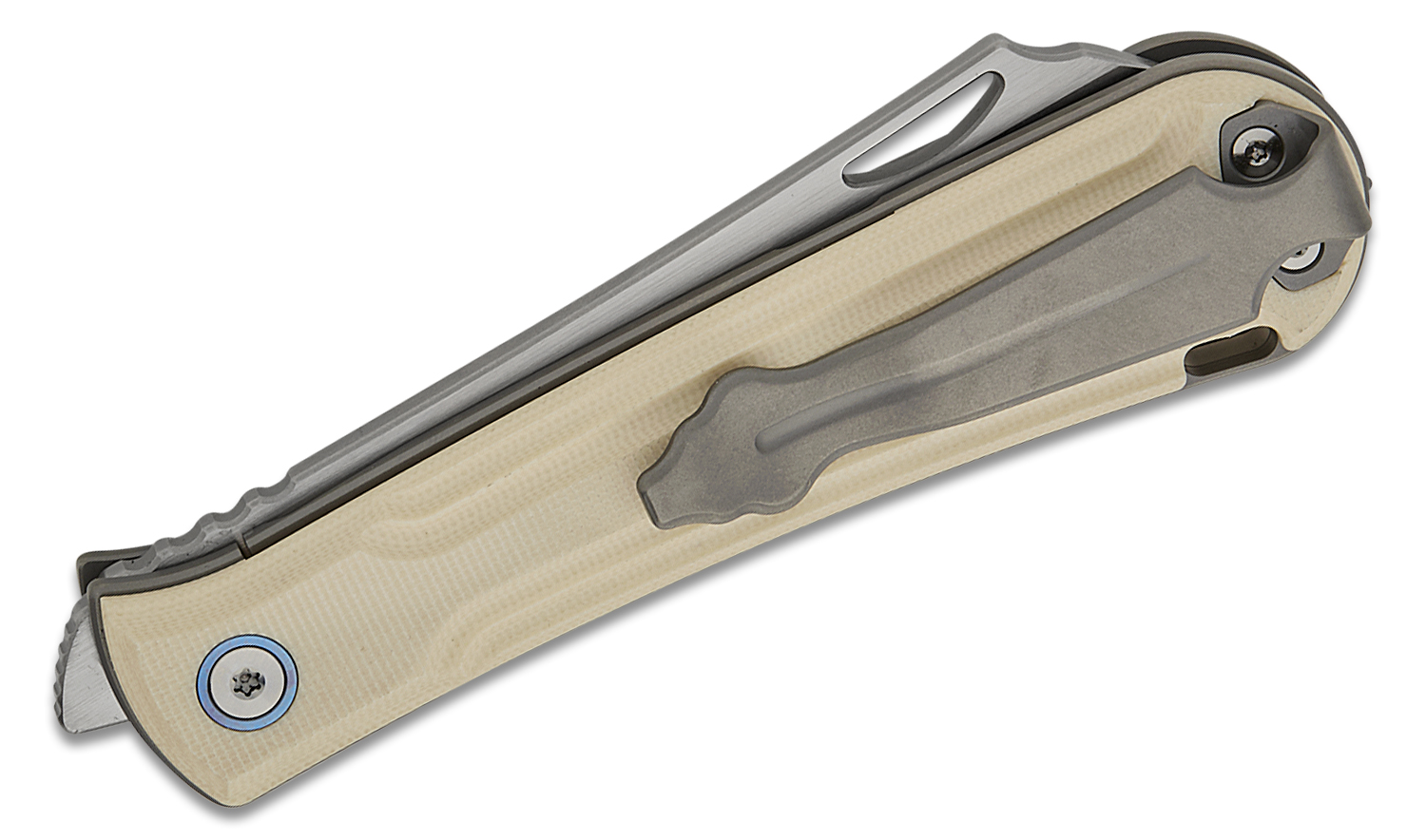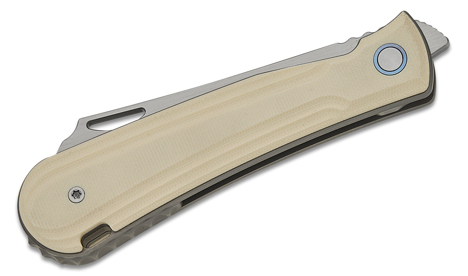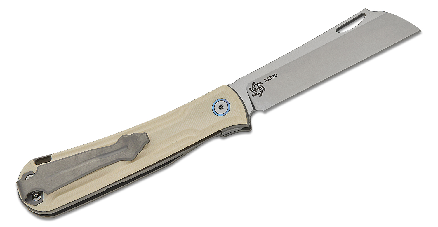 Mechforce Rick Lala Collab Caipira Liner Lock Traditional Front Flipper Knife 3.25" M390 Two-Tone Modified Sheepsfoot Blade, Milled Ivory G10 Handles - RLMFIG01-02