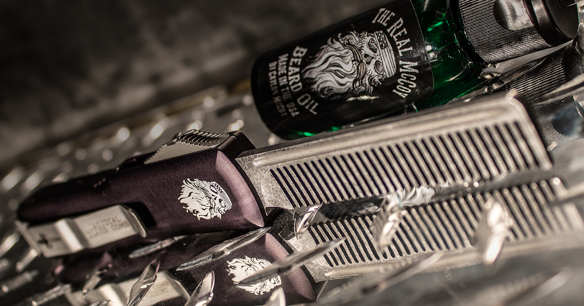 The UTX-85 OTF knife is the perfect combination of compact size and big performance. At 85% the size of the Ultratech, the UTX-85 is manufactured with the same materials, on the same machines and with the same ingenuity as its predecessor. Now, Tony has created a tool in conjunction with The Real McCoy Beard Oil for the manliest of men; the Tactical Beard Comb. The blade is made from Elmax stainless steel with a stonewashed finish and fine teeth to tame even the most scraggly of beards. It was hand-ground by Tony himself and manufactured with the exact same tolerances you find on any of his OTF knives. The black aluminum handle features Tony's custom dagger logo on the front and The Real McCoy logo on the back. With its quick one-handed open and close action, you'll find yourself playing with it endlessly and without a sharpened blade, you can carry it everywhere you go. It's equipped with an ambidextrous pocket clip and glass breaker on the butt end to make it the most tactical beard comb ever created. Includes a nylon zipper pouch and a bottle of Real McCoy Beard Oil.