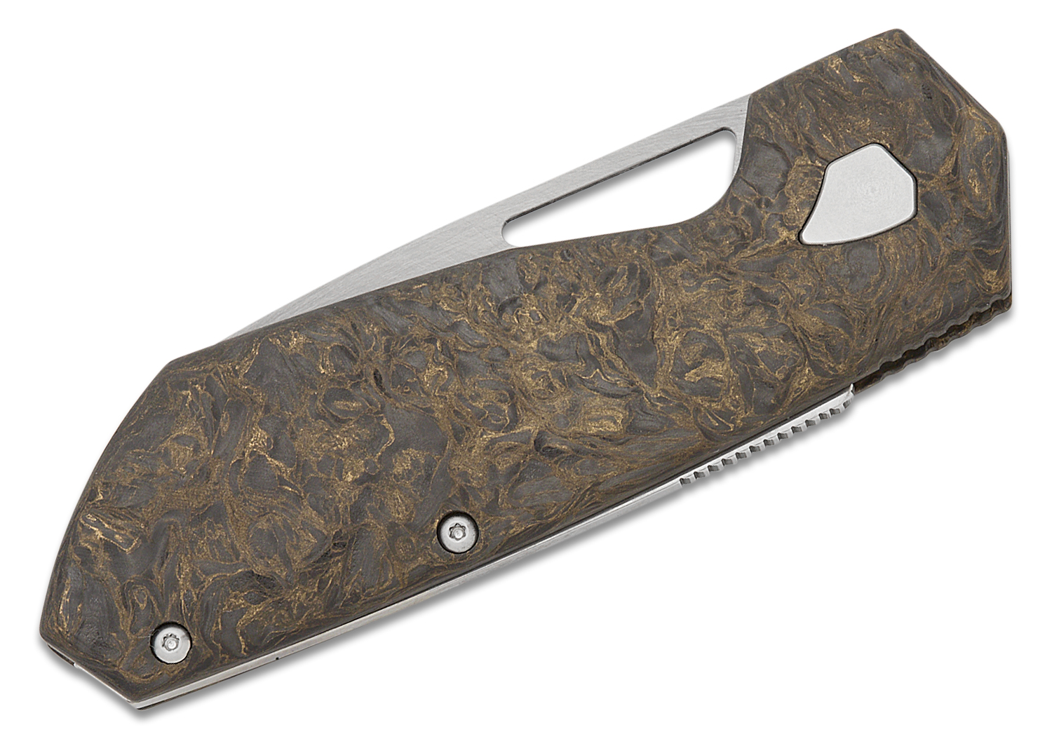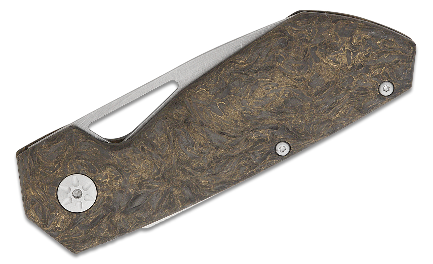 Maserin 373/WTN W1-Lock Folding Knife 2.89" Tungsten Steel Sheepsfoot Blade, Gold FatCarbon Handles, Leather Pouch, Recoil-Lock - 373/WTG
