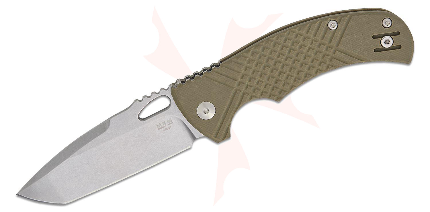 MKM Knives Les George Ciras Liner Lock Folding Knife 3.13" Sandvik 14C28N Stonewashed Tanto Blade, Machined OD Green Frag G10 Handles - MK CR-GOD