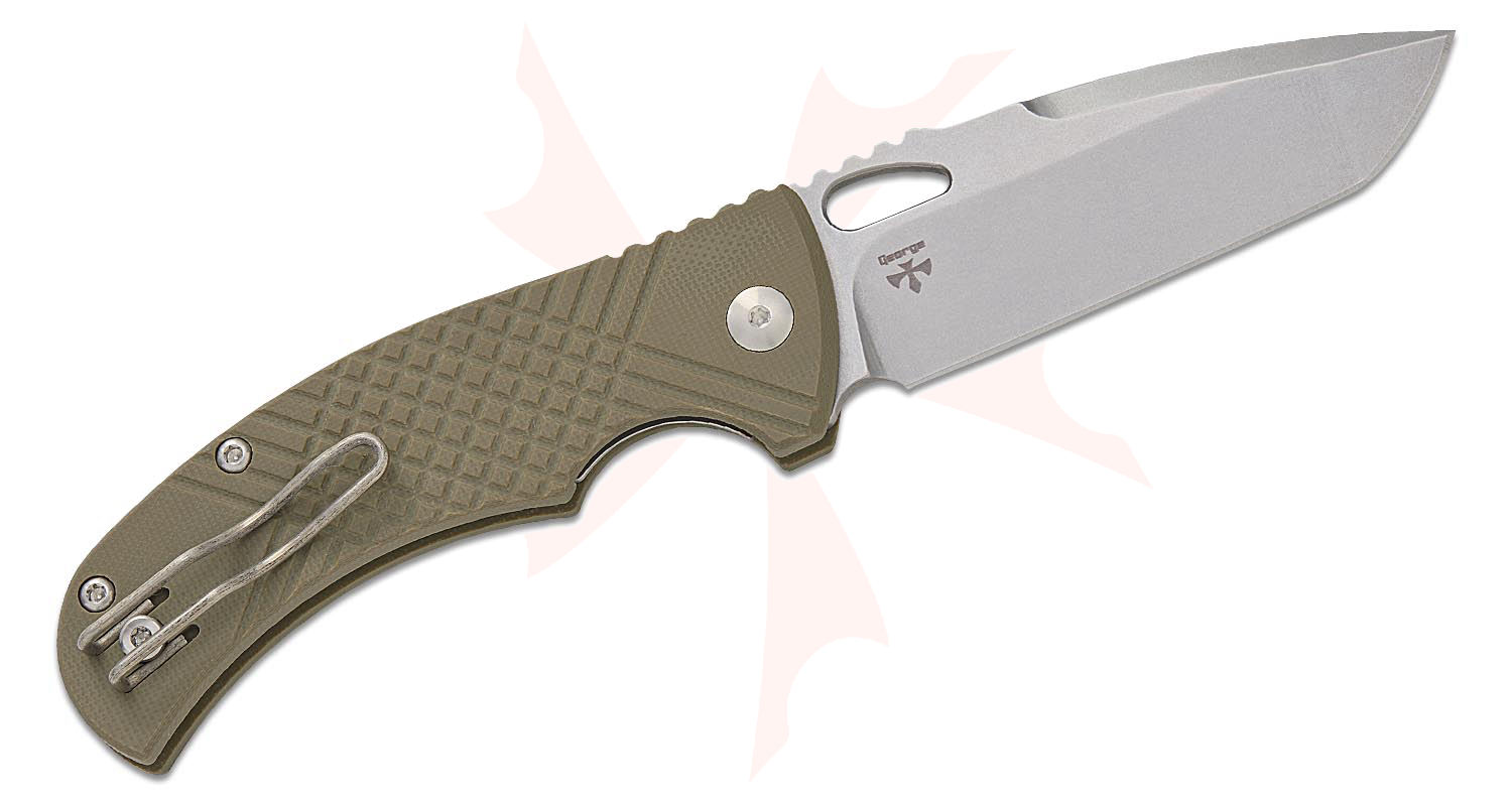 MKMCRGOD: Les George Ciras Folding Knife - Stonewashed/OD Green Frag G10