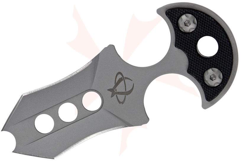 This boot knife will certainly do some damage. Its name hardly does it justice. With its never before seen blade design and triple bleeder holes that double as detents for its sheath, the dagger is like nothing else on the planet. G10 scales complete its post-modern look. This piece is just a hair under 4". It's constructed of bead-blast coated 440V stainless steel. It's rugged enough to take anything you can give.