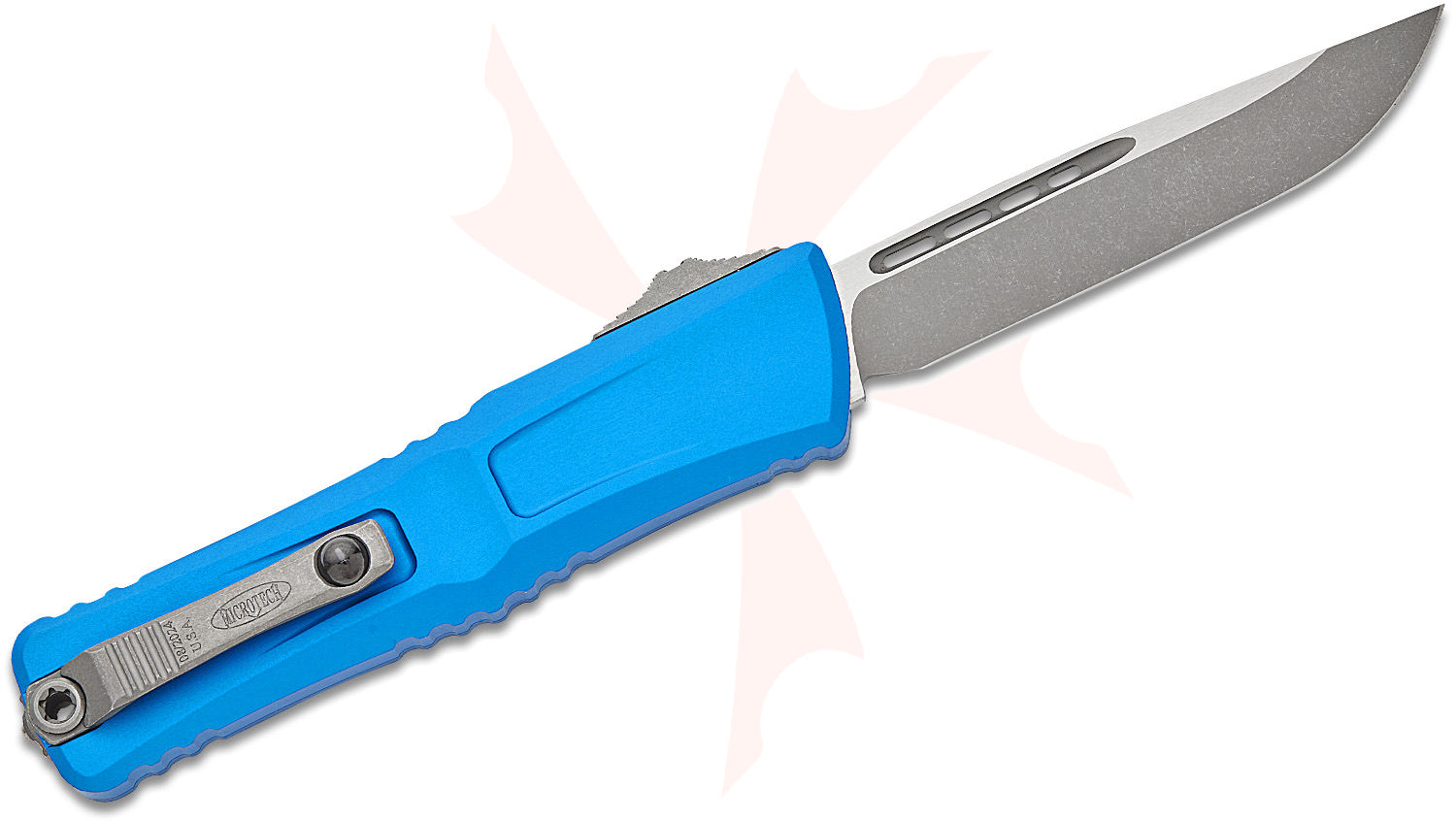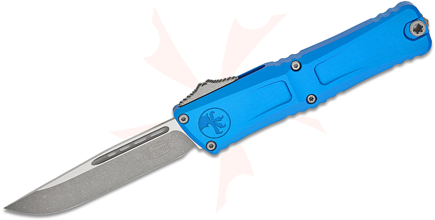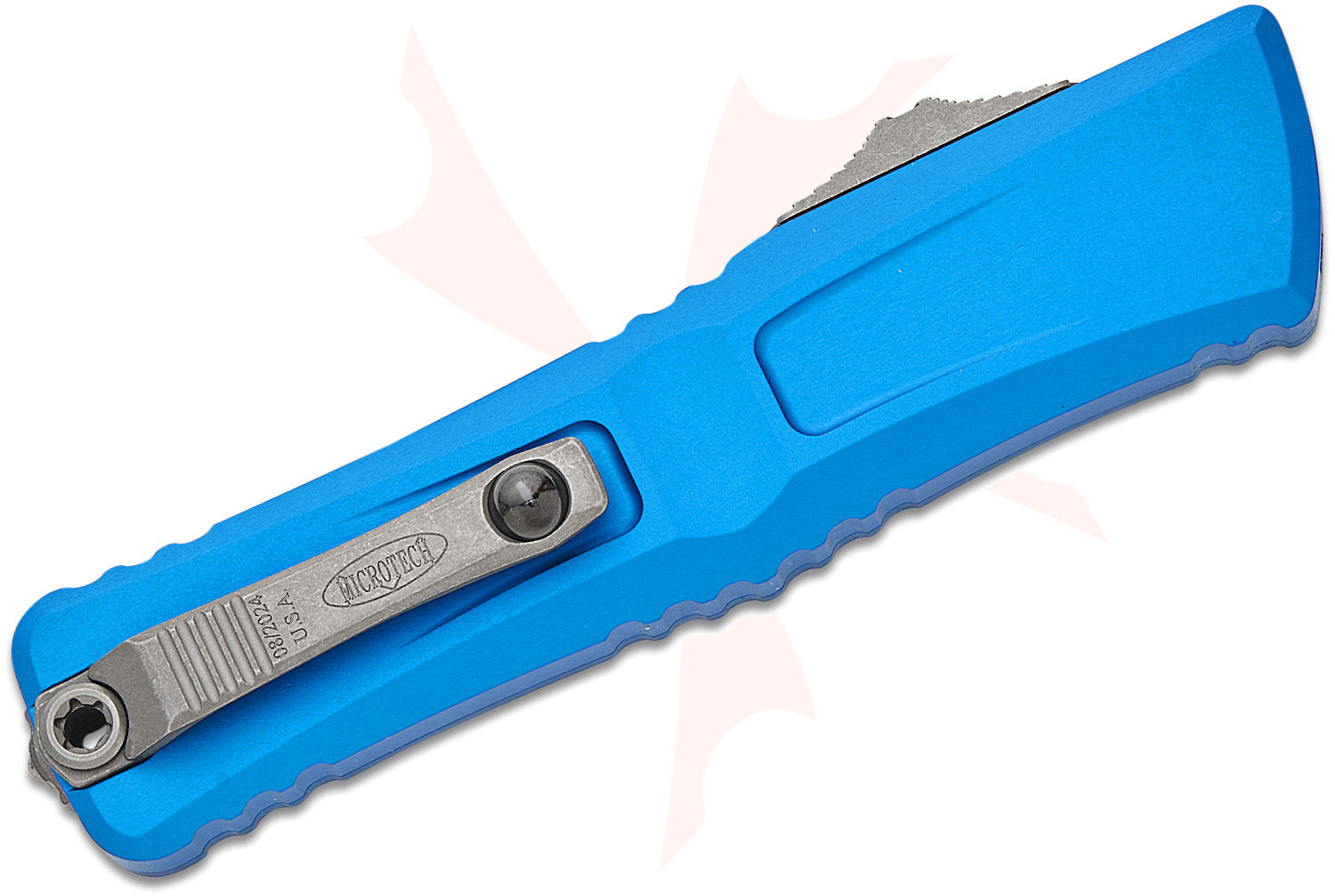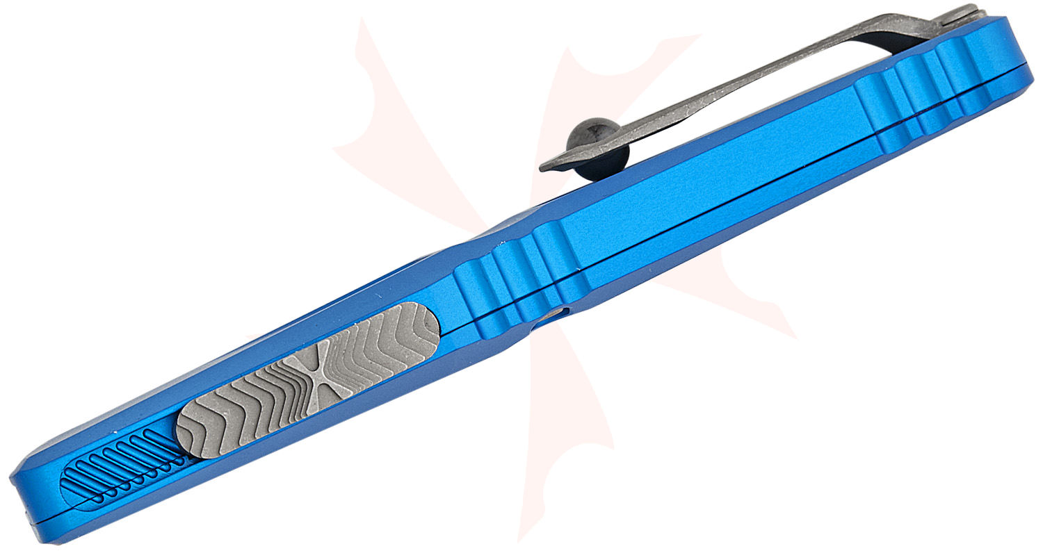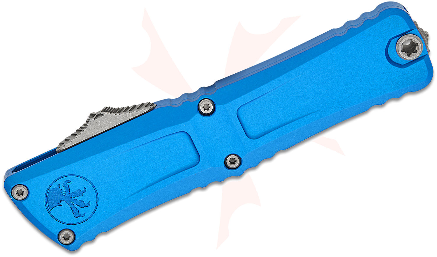 Microtech Combat Troodon Gen III AUTO OTF Knife 4.125" M390MK Apocalyptic Drop Point Blade, Blue Deep Engraved Aluminum Handles - 1143-10APBL