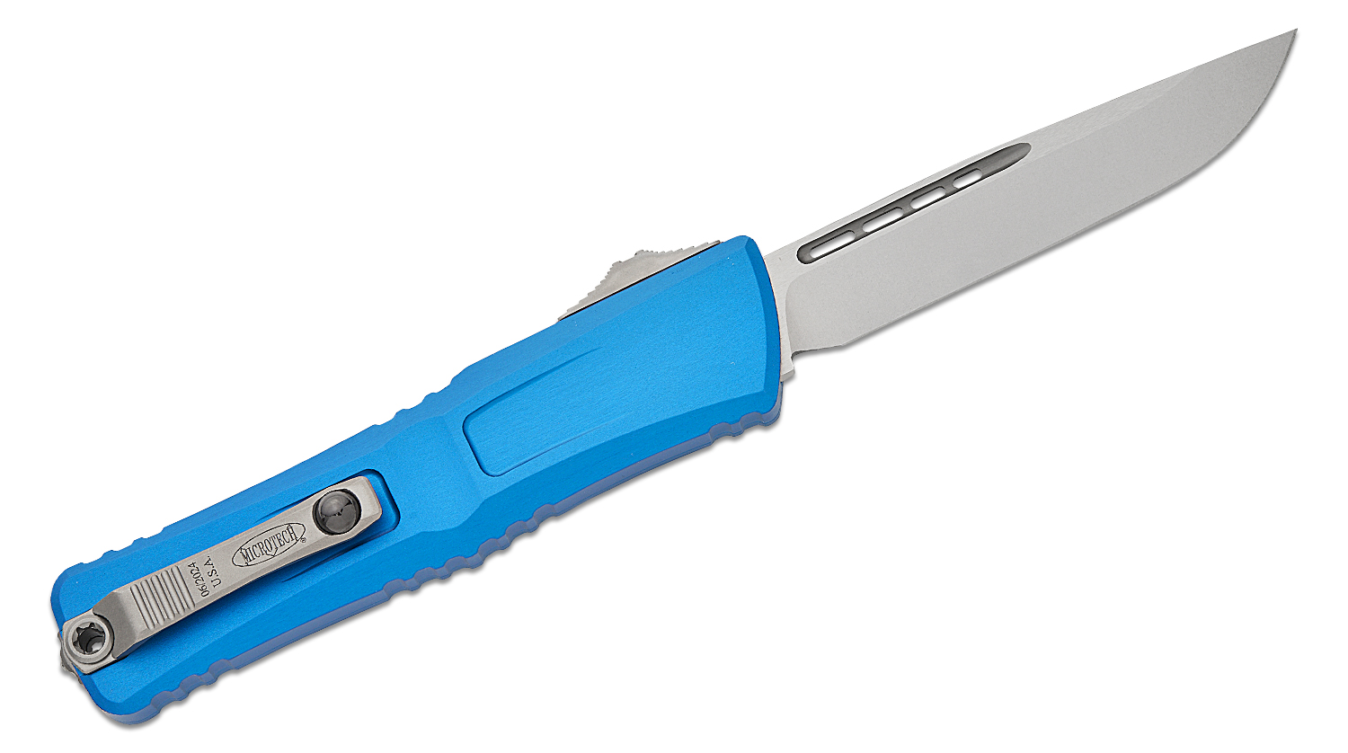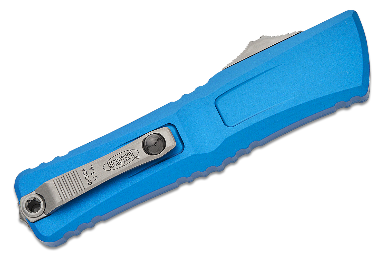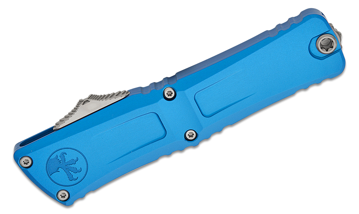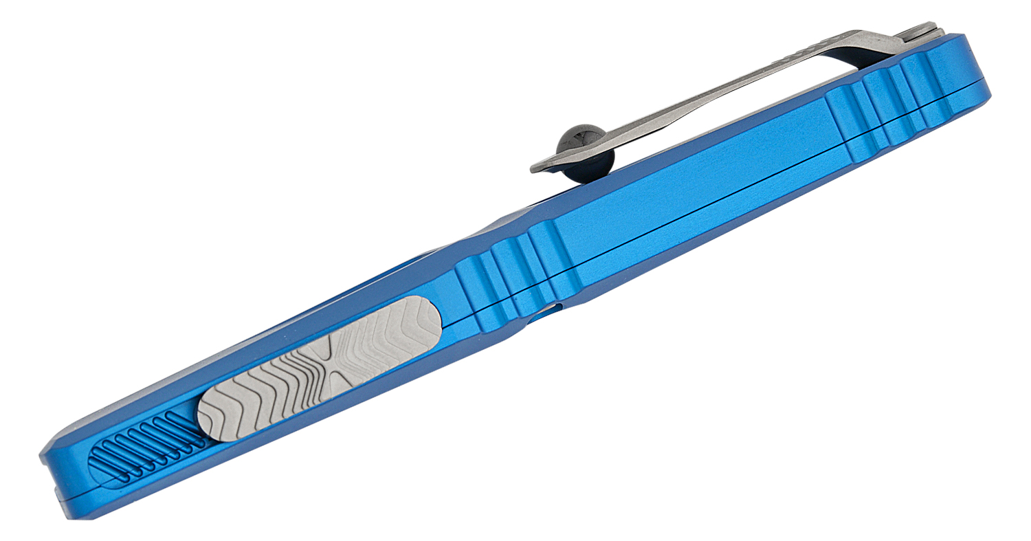Microtech 1143-10BL Combat Troodon Gen III AUTO OTF Knife 4.125" M390MK Stonewashed Drop Point Blade, Blue Deep Engraved Aluminum Handles