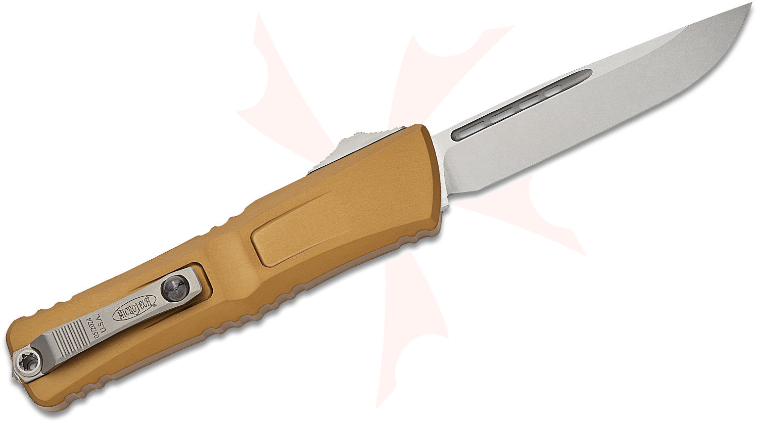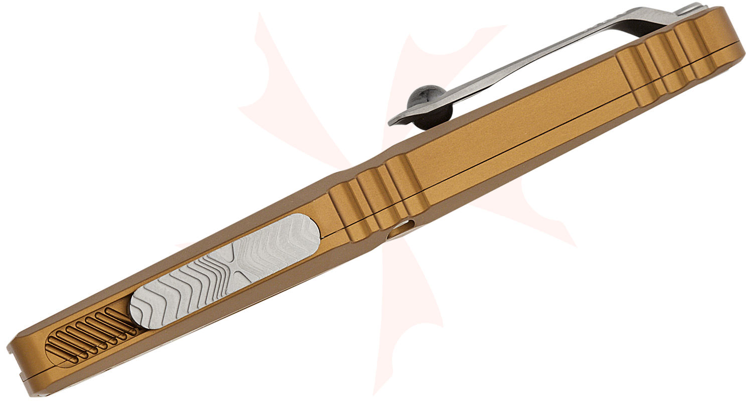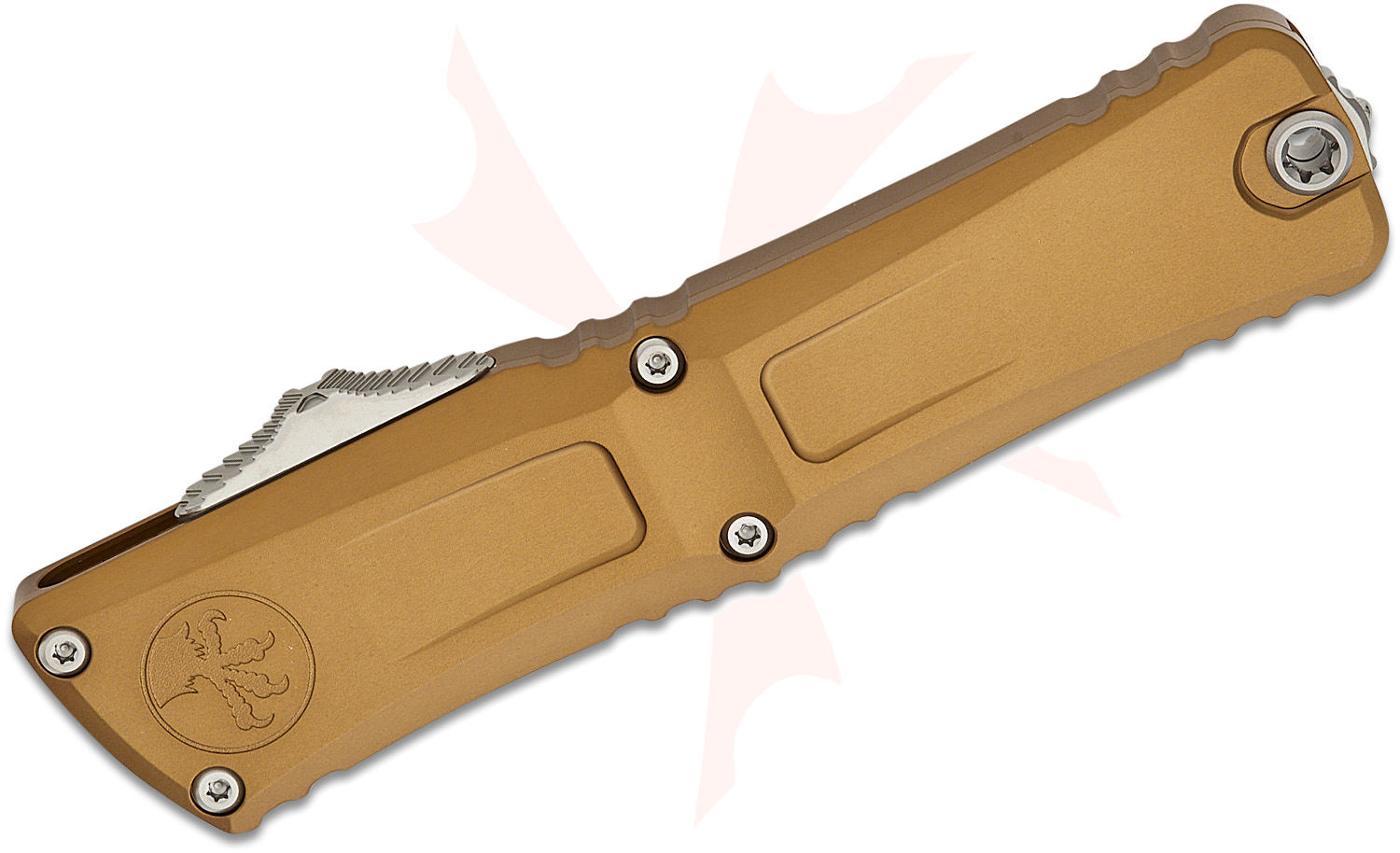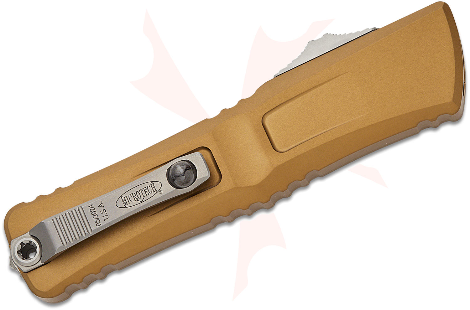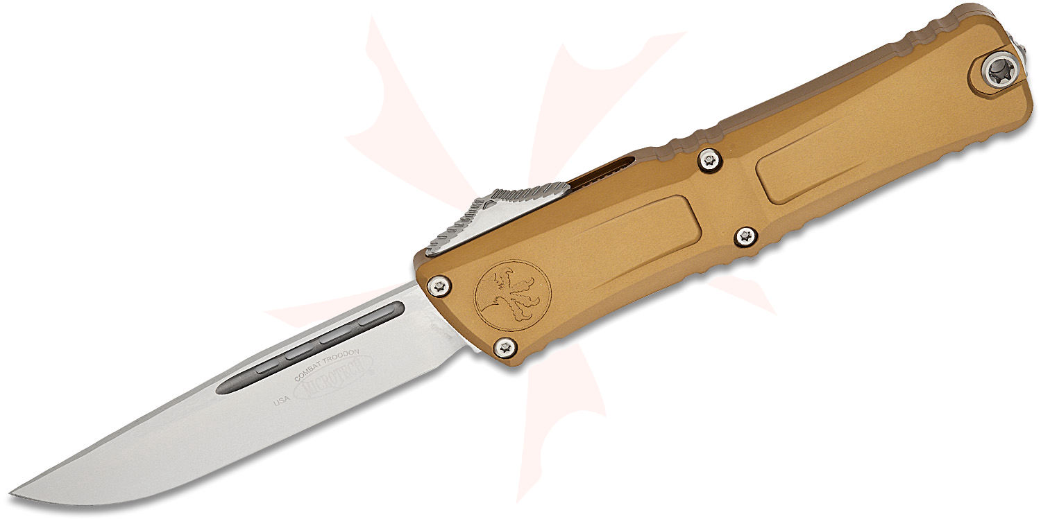 Microtech 1143-10TA Combat Troodon Gen III AUTO OTF Knife 4.125" M390MK Stonewashed Drop Point Blade, Tan Deep Engraved Aluminum Handles