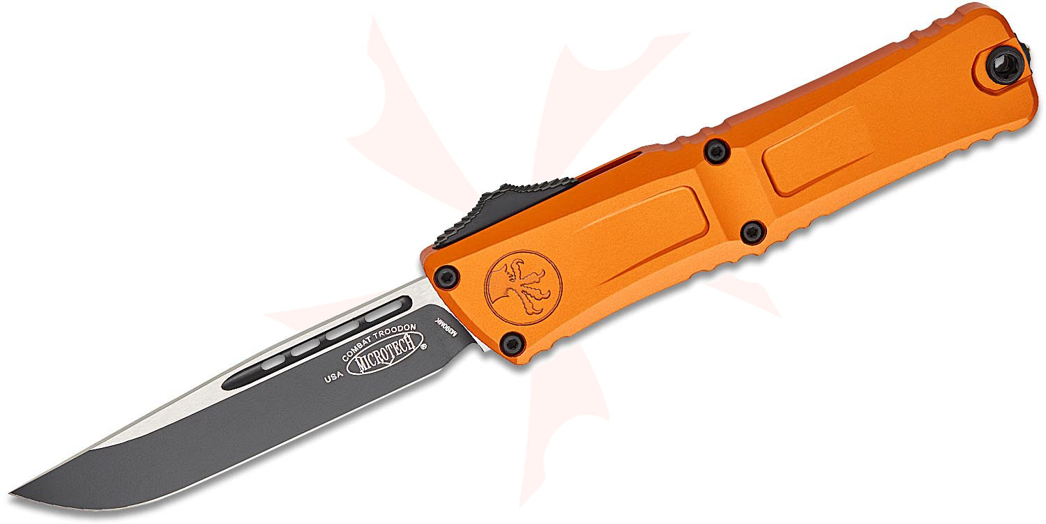Microtech 1143-1OR Combat Troodon Gen III AUTO OTF Knife 4.125" M390MK Black Drop Point Blade, Orange Deep Engraved Aluminum Handles