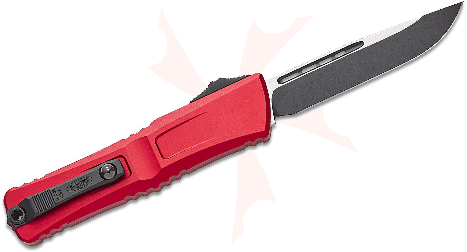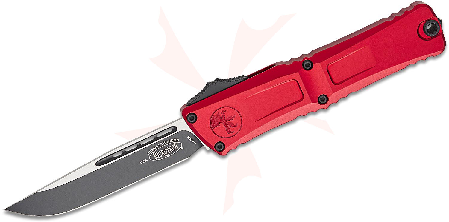 Microtech 1143-1RD Combat Troodon Gen III AUTO OTF Knife 4.125" M390MK Black Drop Point Blade, Red Deep Engraved Aluminum Handles