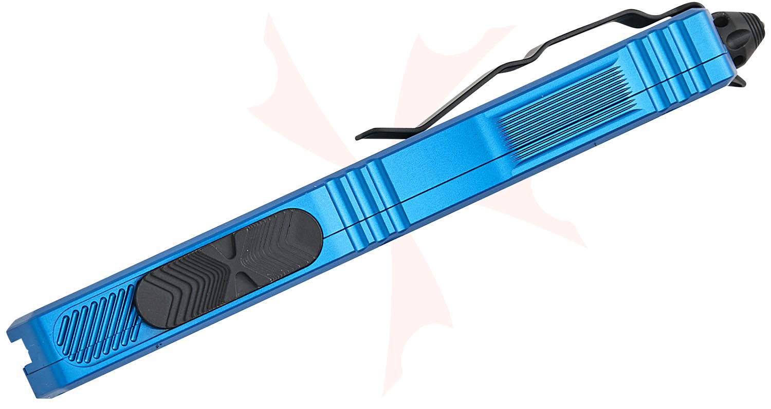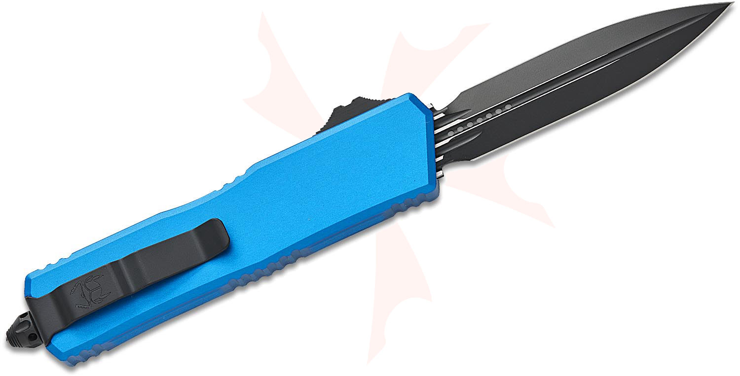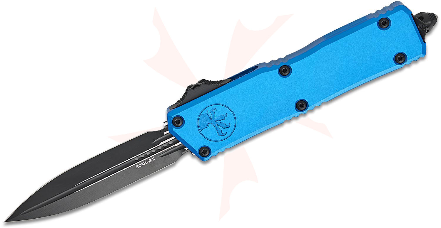 Microtech 1175-1BL Scarab II Gen III Executive AUTO OTF Knife 3.875" M390MK Black Double Edge Dagger Blade, Blue Machined Aluminum Handles