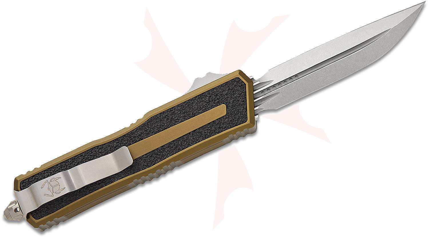 Microtech 1180-10OD Scarab II Gen III D/E-S AUTO OTF Knife 3.875" M390MK Stonewashed Double Edge Drop Point Plain Blade, OD Green Aluminum Handles with 3M Traction Tape Inserts
