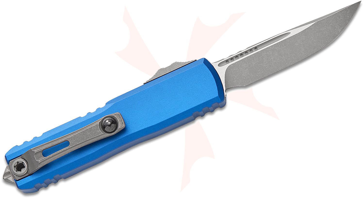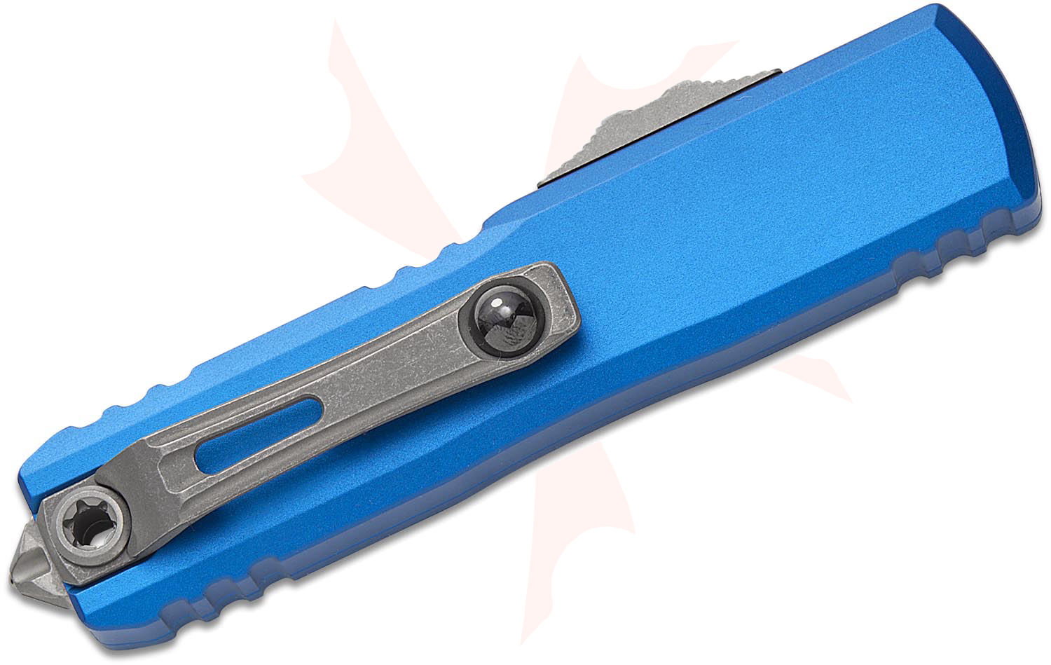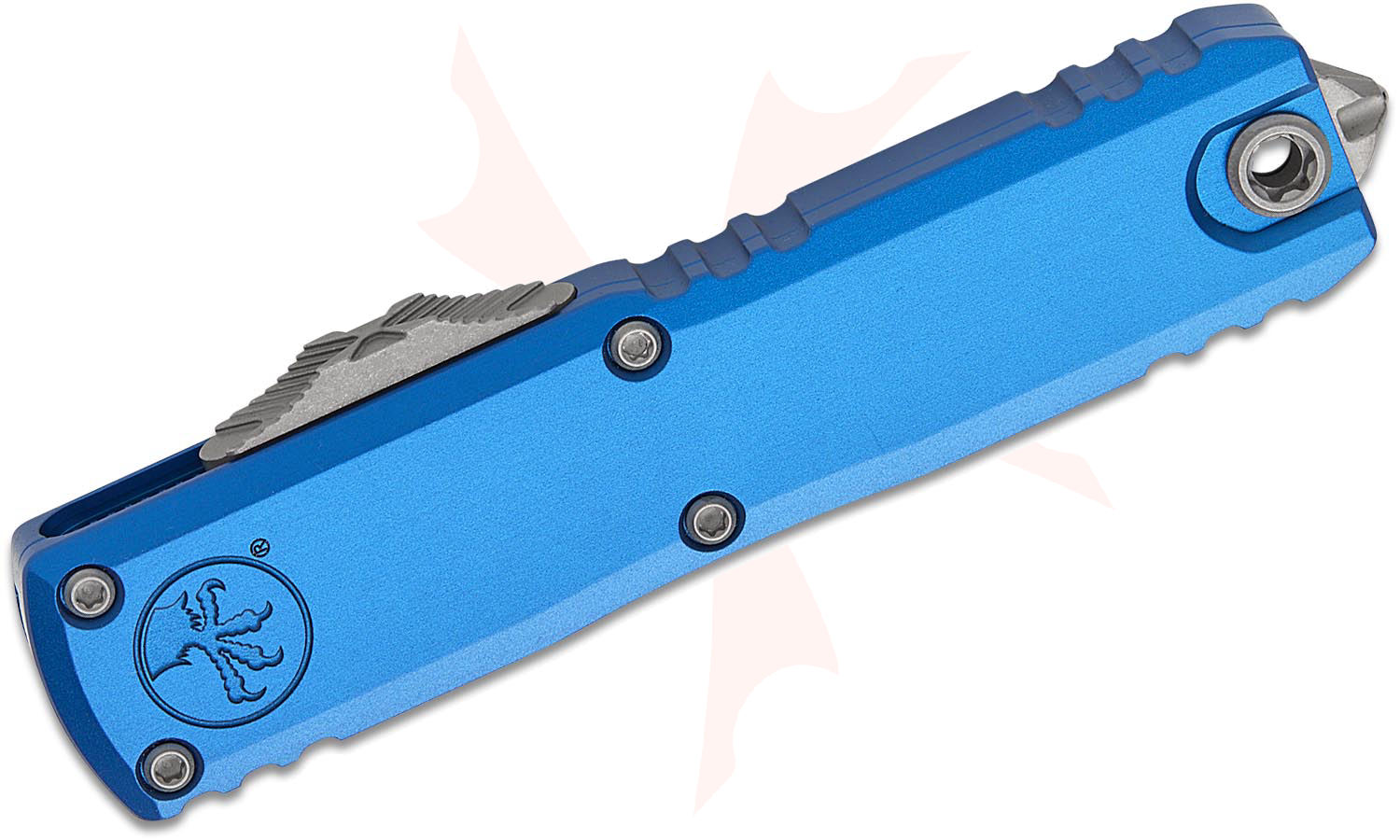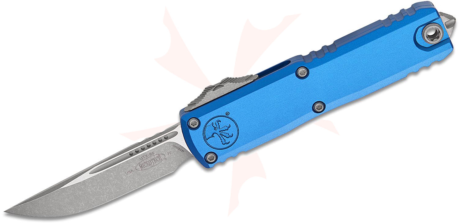 Microtech 12314-10APBL UTX-85 Gen IV OTF AUTO Knife 3" M390MK Apocalyptic Drop Point Blade, Blue Machined Aluminum Handles