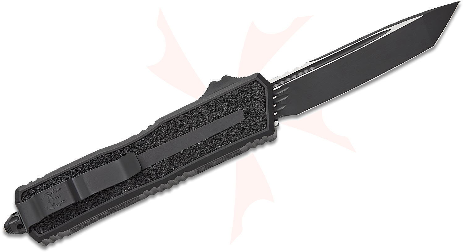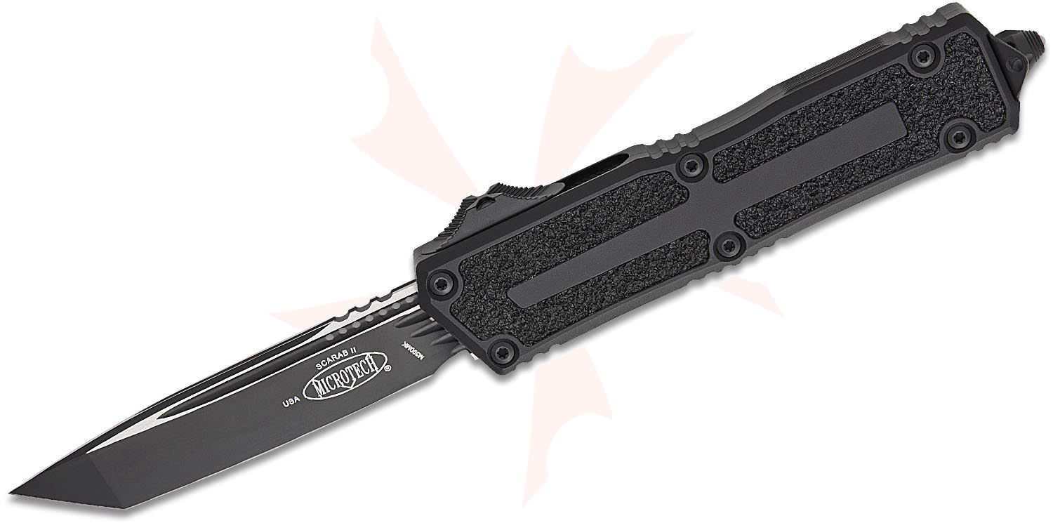 Microtech 1279-1T Scarab Gen III Tactical AUTO OTF Knife 3.95" M390MK Black Tanto Blade, Black Aluminum with Black Traction Inlays