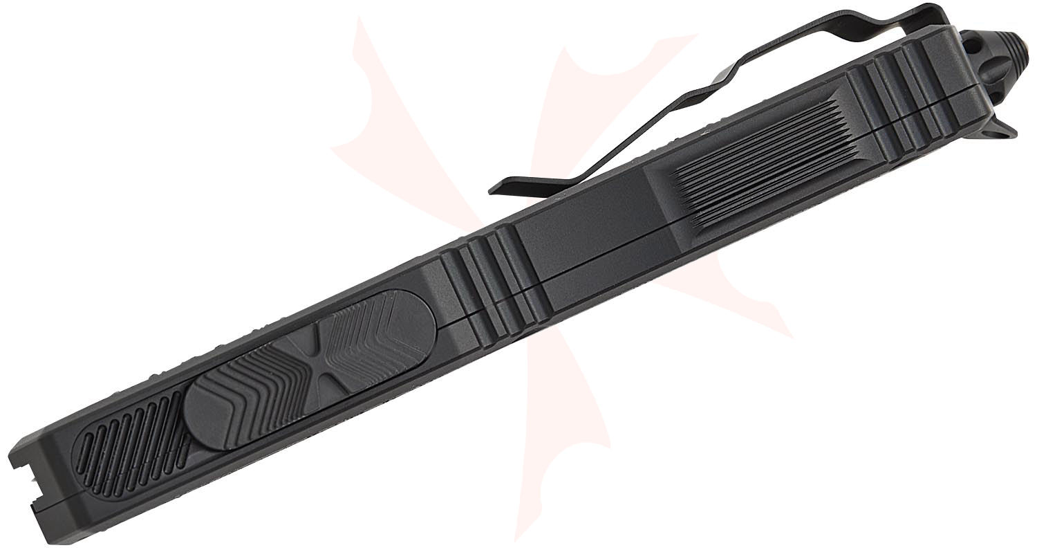 The Microtech Scarab Gen III is a high-quality tactical out-the-front knife, based on the original Microtech Ultratech design. Built to withstand the extreme, the Scarab II excels in high-intensity covert operations. The Scarab II is designed for a broad spectrum of utility and close-quarter combat applications for use by qualified law enforcement, military, and government agency operatives. The Scarab II is fabricated to the highest possible standards to assure reliability and safety with its use. Featuring a one-handed, open and close, dual-action out-the-front (OTF) design, the Scarab is produced with a large easy-to-grip handle that contains non-slip grip inlays on both sides.