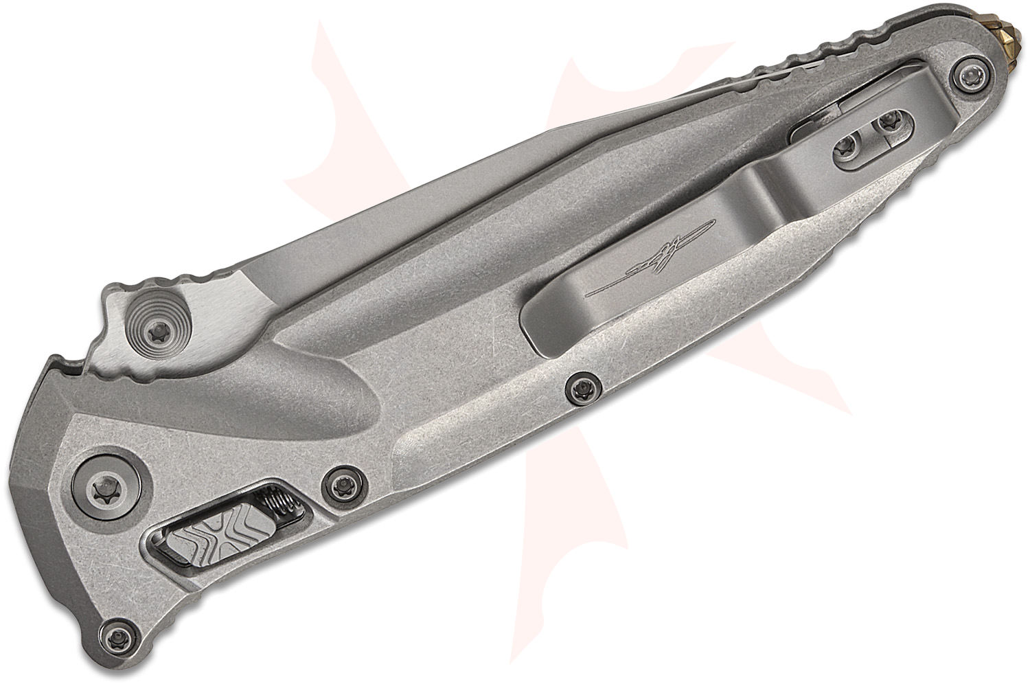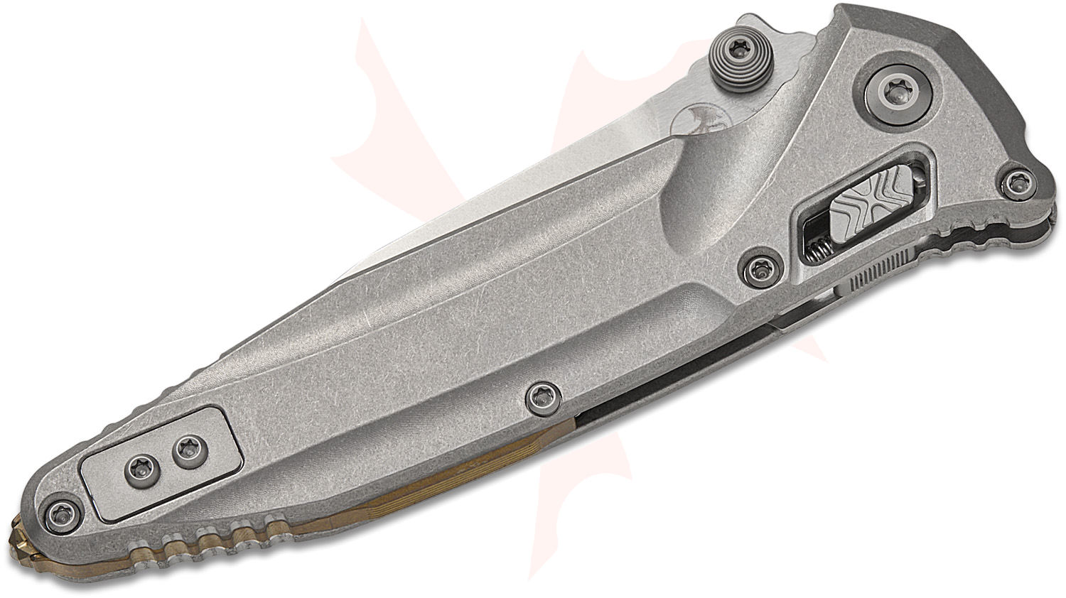 Microtech 159RL-10SMS1 Marfione Select Socom Delta RAM-LOK Folding Knife 4" M390MK Stonewashed Spear Point Blade and Contoured Titanium Handles, Bronze Accent, Reversible Clip, AXIS/Crossbar Lock - 159RL-10SMS2