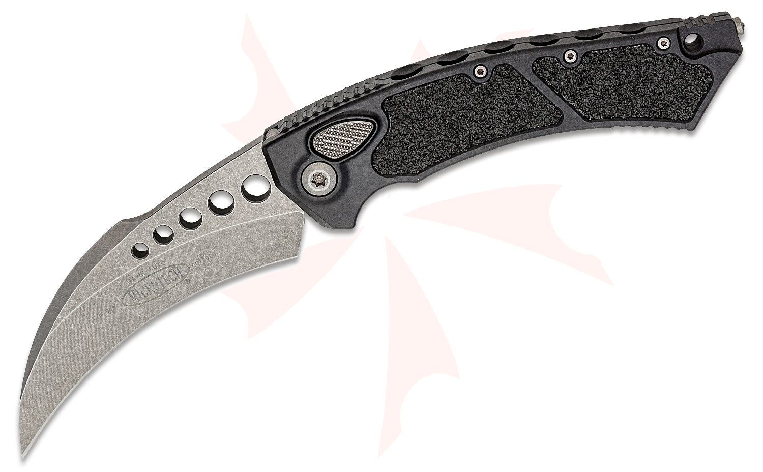 Microtech 166-10AP Hawk AUTO Folding Knife 3.95" Apocalyptic Karambit Blade, Black Aluminum Handles with Textured Inserts