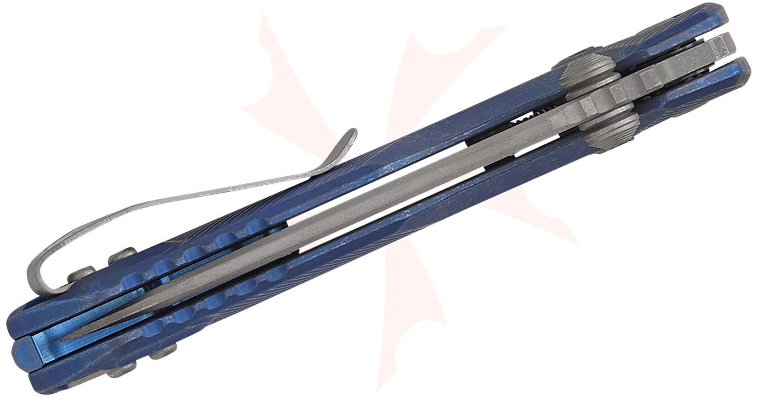 - Handle Material: Antique Blue Anodized Fluted Titanium