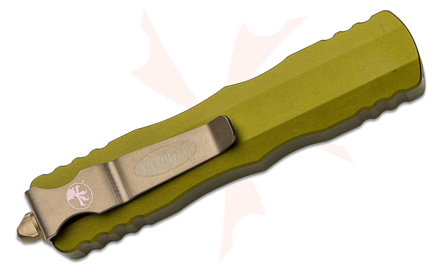 Microtech 225-13OD Dirac AUTO OTF Knife 2.92" Bronze Double Edge Dagger Blade, OD Green Aluminum Handles