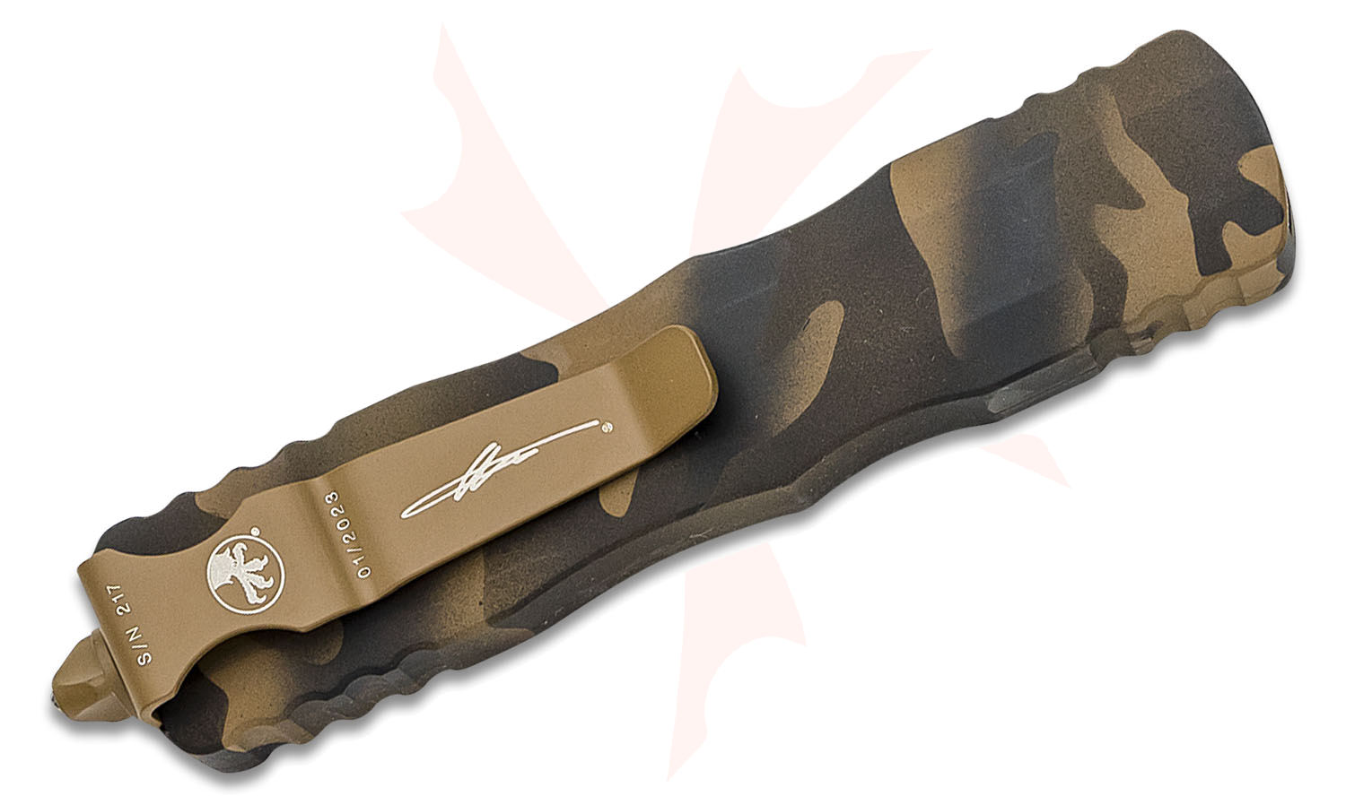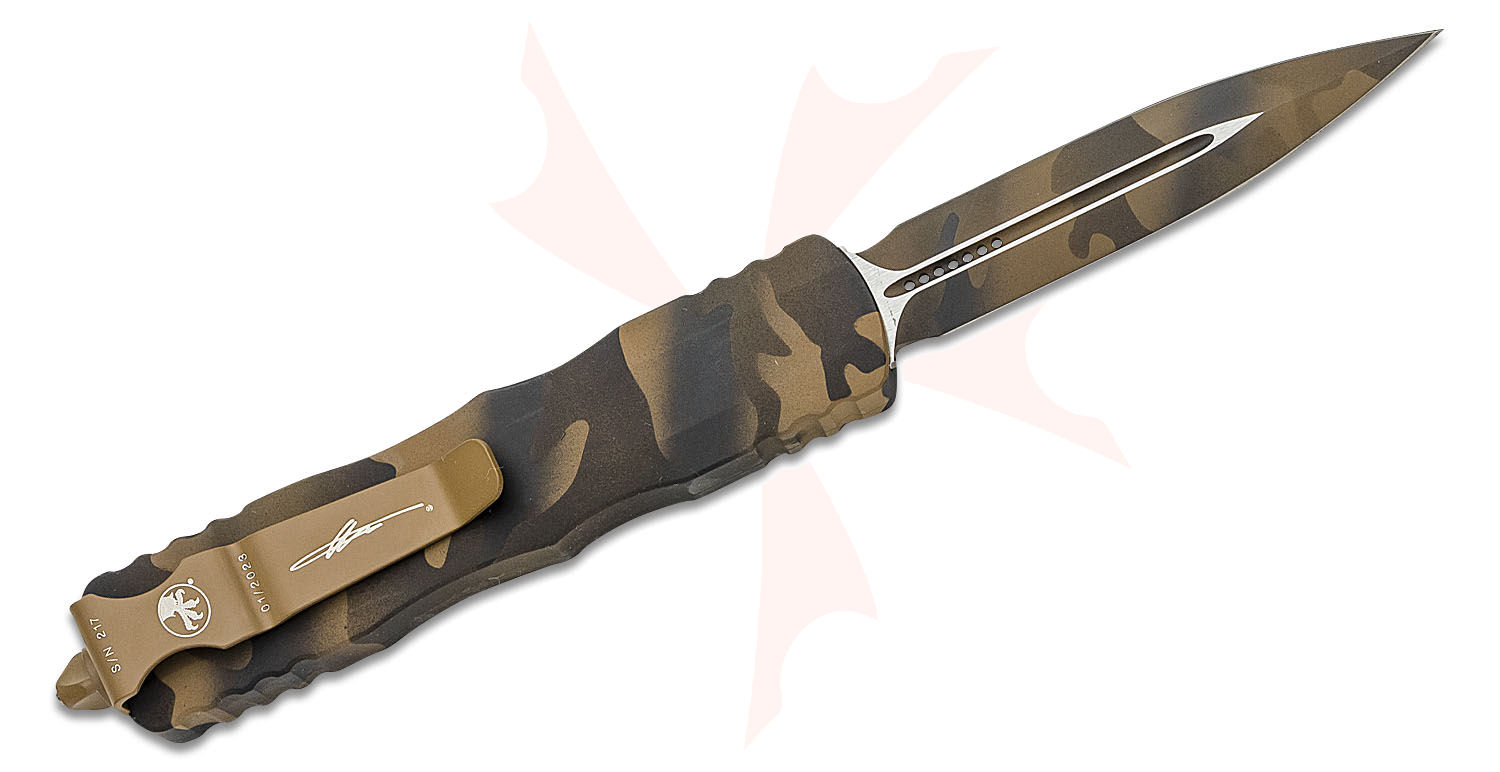 Microtech 225-1CCS Signature Series Dirac AUTO OTF Knife 2.92" Coyote Camo Double Edge Dagger Blade, Coyote Camo Aluminum Handles