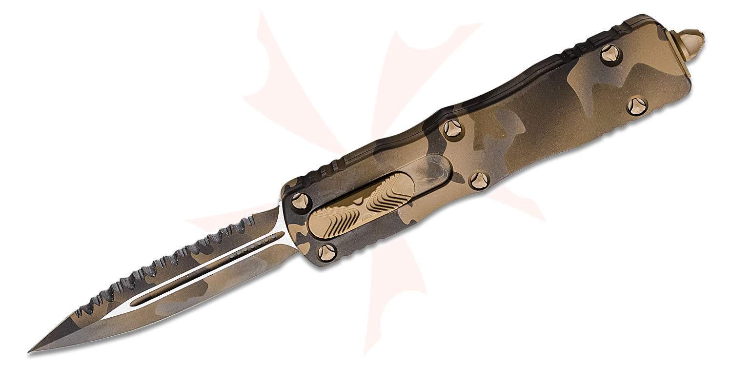 Microtech 225-3CCS Signature Series Dirac AUTO OTF Knife 2.92" Coyote Camo Plain/Serrated Double Edge Dagger Blade, Coyote Camo Aluminum Handles