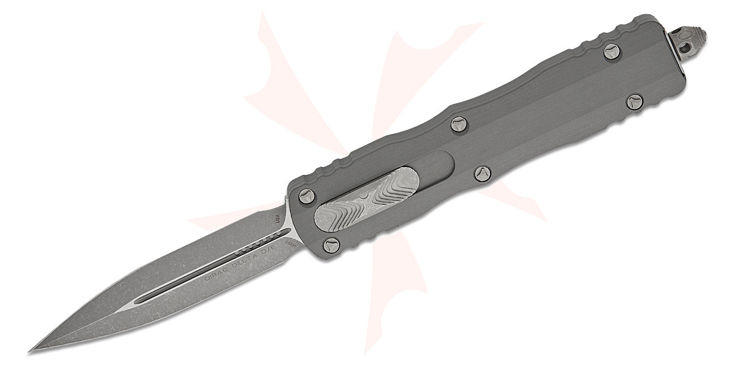 Microtech 227-10APNC Dirac Delta AUTO OTF Knife 3.79" Apocalyptic Double Edge Dagger Blade, Natural Clear Aluminum Handles