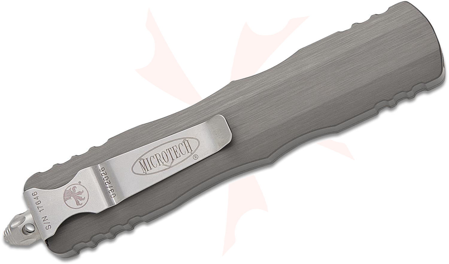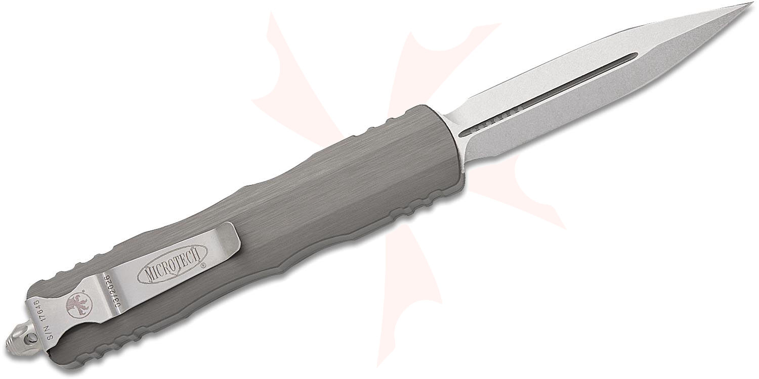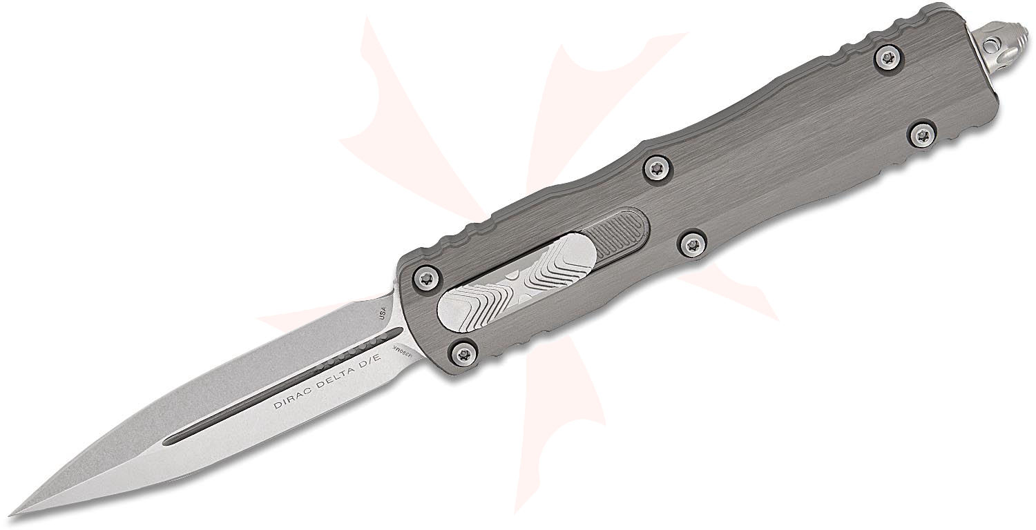 Microtech 227-10NC Dirac Delta AUTO OTF Knife 3.79" Stonewashed Double Edge Dagger Blade, Natural Clear Aluminum Handles