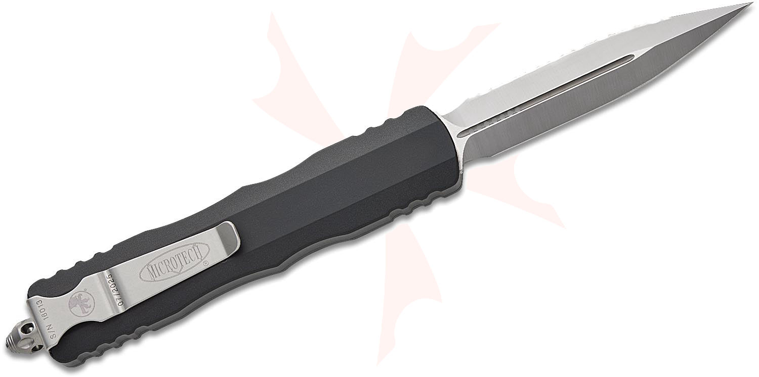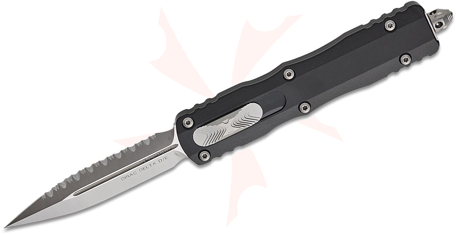 Microtech 227-6 Dirac Delta AUTO OTF Knife 3.79" Satin Plain/Serrated Double Edge Dagger Blade, Black Aluminum Handles