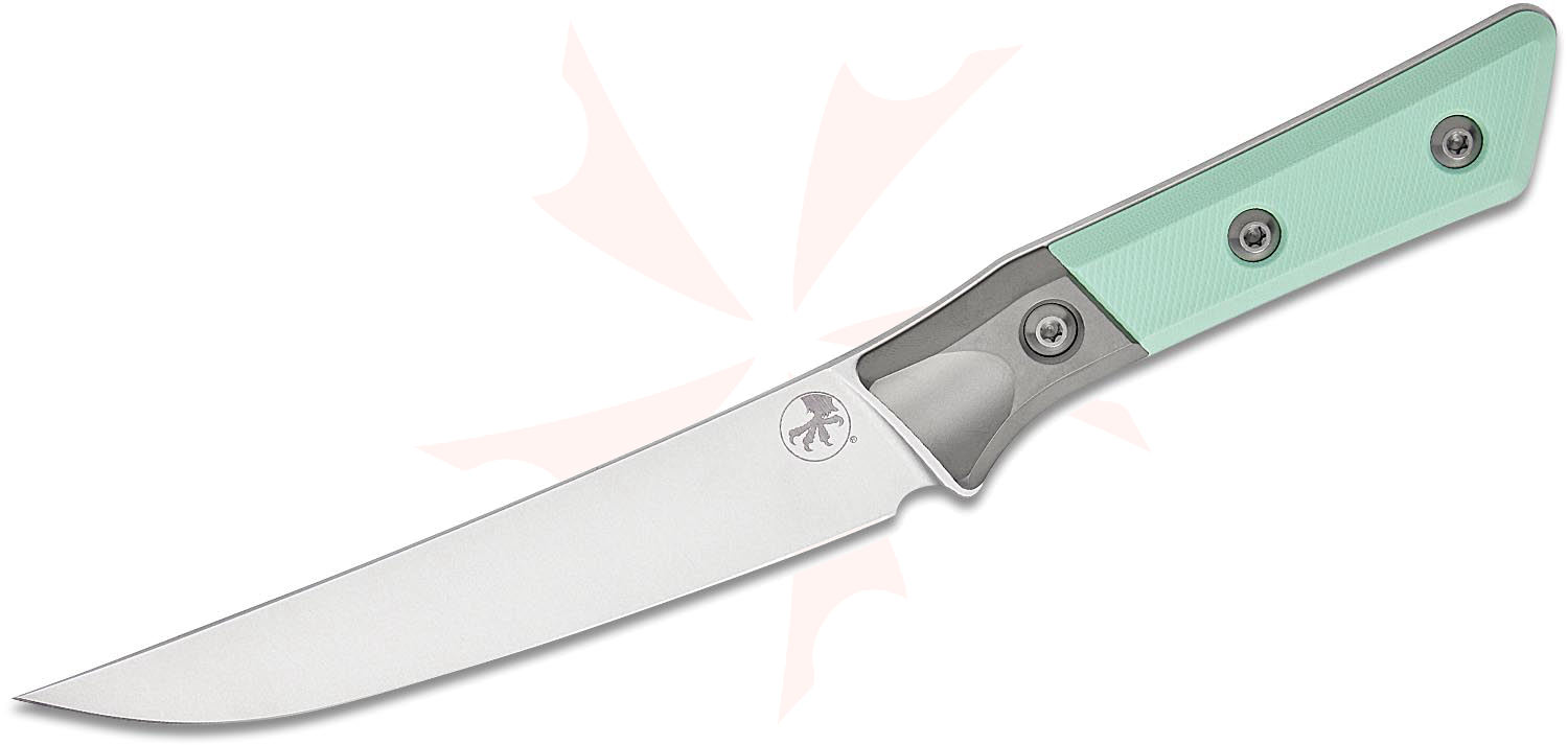Microtech 3100B-10CA Kitchen Boning Knife 6.25" M390MK Stonewashed Blade, Caribbean Blue G10 Handles with Bead Blasted Titanium Bolsters