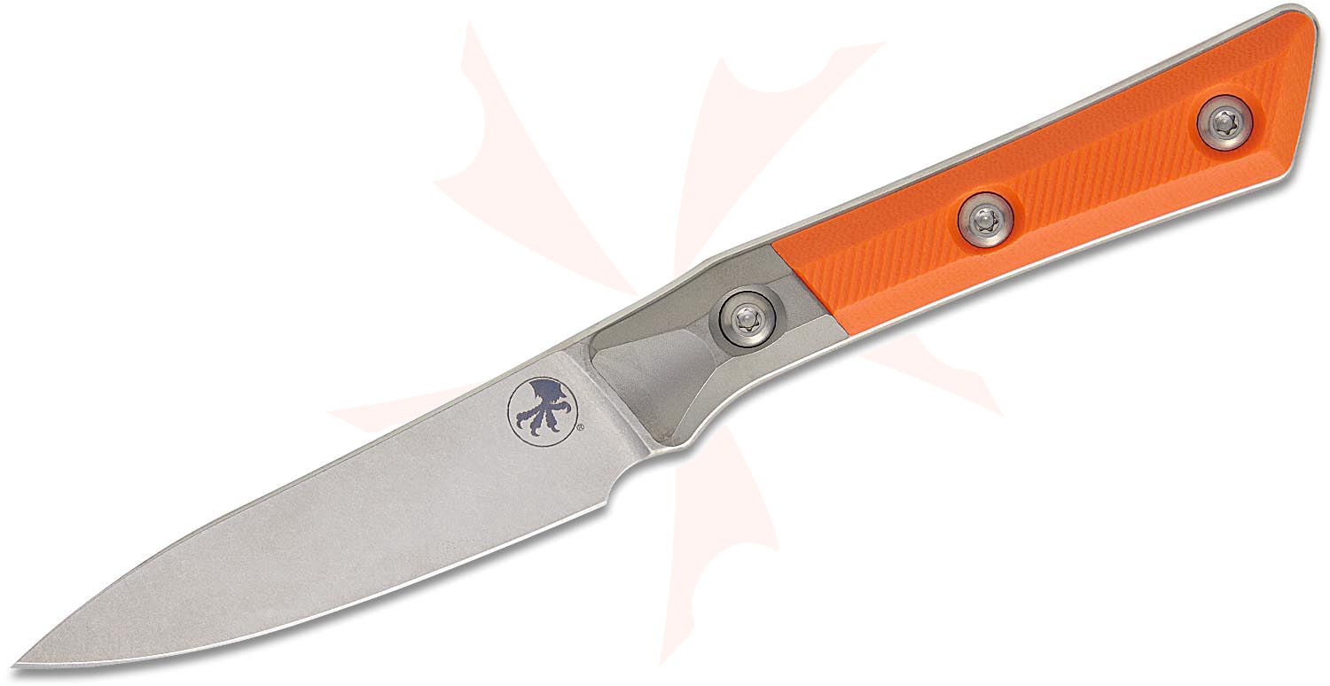 Microtech 3500B-10EM Kitchen Paring Knife 3.75" M390MK Stonewashed Blade, Ember Orange G10 Handles with Bead Blast Titanium Bolsters