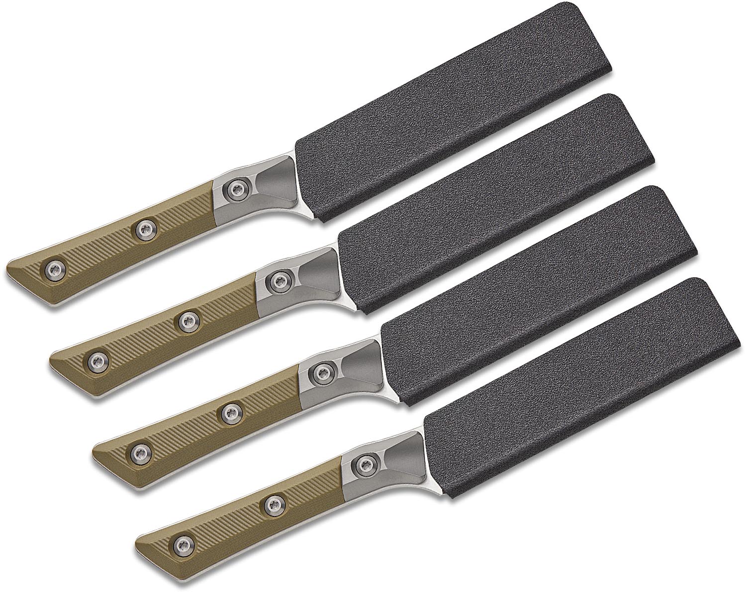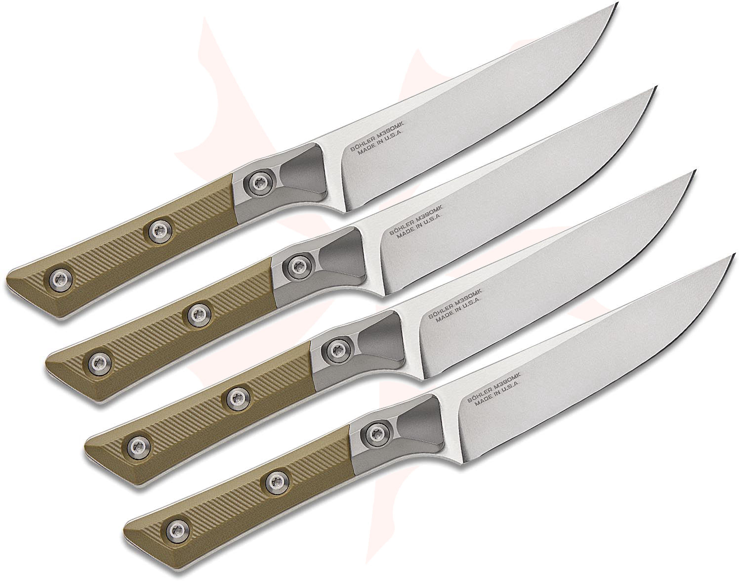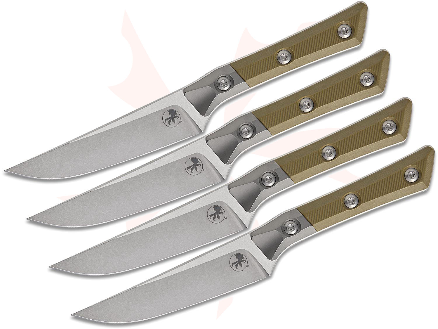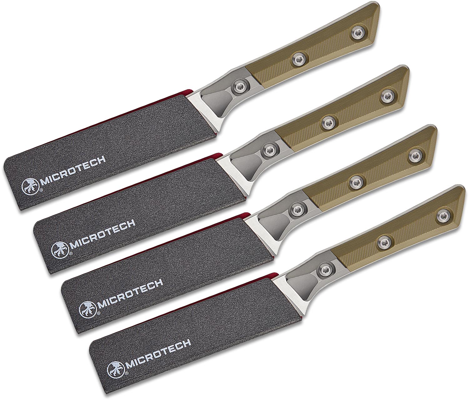Microtech 3600B-10SETOD Kitchen 4-Piece Steak Knife Set, 4.5" M390MK Stonewashed Plain Blades, OD Green G10 Handles with Bead Blast Titanium Bolsters