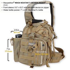 The Maxpedition NOATAK is the latest addition to our Gearslinger lineup. Like the Sitka and Kodiak, this pack is designed to be worn on the back and rotates 270 degrees towards the front of the body for easy access to contents; this feature is particularly useful when the pack is worn while sitting down. Exterior modular webbing allows attachment of various pouches while internal loop fields facilitate concealed carry.