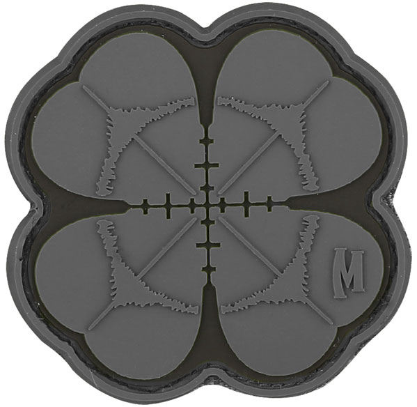 This Maxpedition PVC morale patch combines a target with a four leaf clover to emblemize a "lucky shot."
