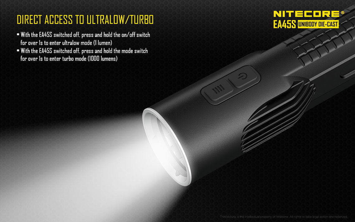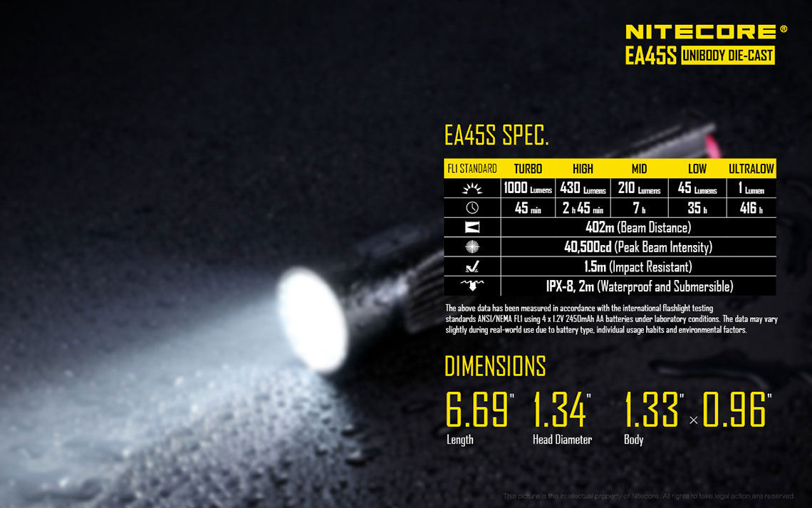 The Explorer Series EA45S LED Flashlight is a lightweight, durable package with tons of features and puts out a whopping 1000 max lumens! Check out the user manual for everything you need to know about the flashlight.