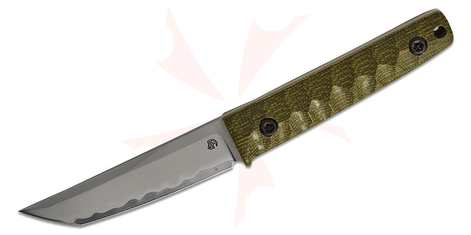 The North Mountain Blade Chop Mini fixed blade brings high-end craftsmanship into a compact form designed for versatility and control. With a 3.5″ blade and 3.25″ cutting edge, it provides ample slicing surface; the 7.5″ overall length and 3.85″ handle length make it comfortable to manage for everyday or outdoor use. The tanto blade is crafted from Japanese SLD semi-stainless steel with a flat grind and a distinctive hamon finish. The handle is made from G10 for durability and grip, while the Kydex sheath ensures secure and convenient carry. At just 3.7 oz (5 oz with the sheath), it maintains a lightweight balance suited for frequent use.