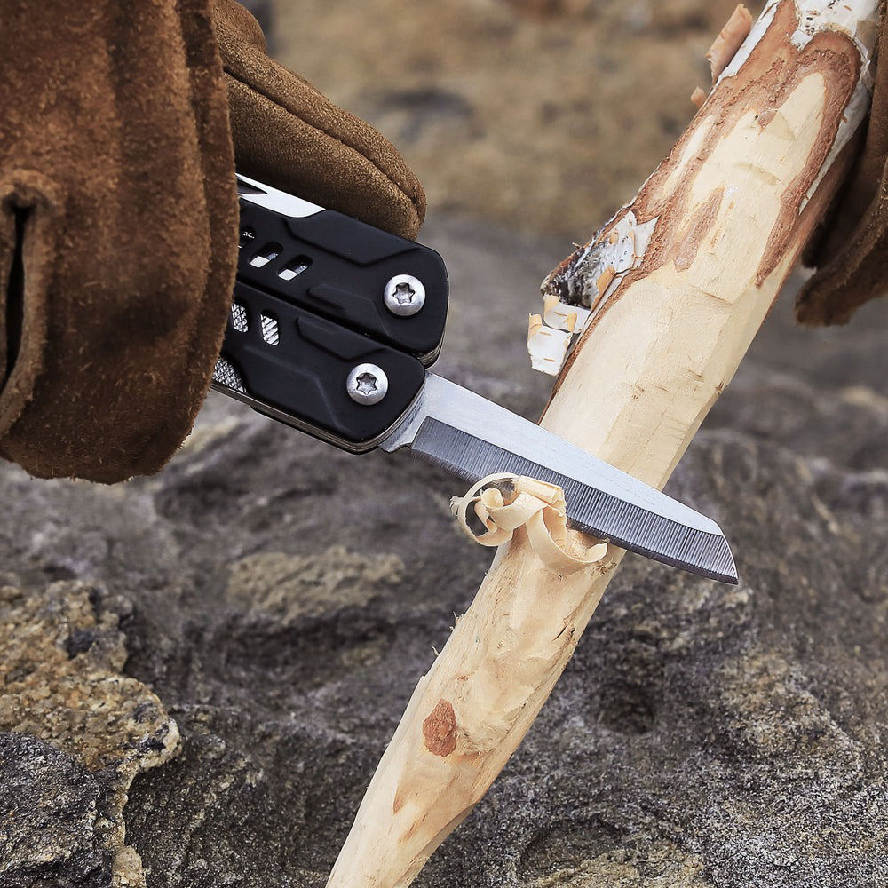 The Nextool Mini Sailor Scissors is a compact, 10-tool multi-tool where the primary implement is a superior pair of large, spring-loaded scissors, making it an excellent choice for detailed cutting tasks. Constructed from 30Cr13 stainless steel for the scissors and knife, this multitool has a 2.63" closed length and weighs 2.75 ounces. The full tool count includes the scissors, mini pliers, knife, Phillips screwdriver, flat-head screwdriver, metal file, bottle opener, SIM card needle; all integrated into an easy-to-carry format with anodized aluminum handles.