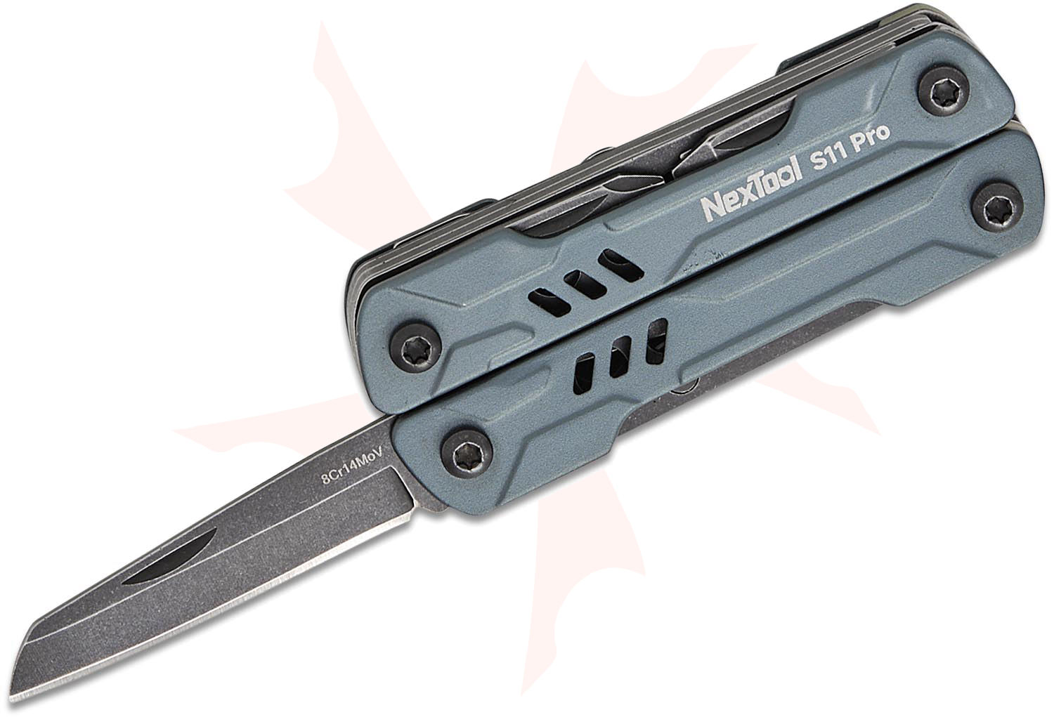 The NexTool Mini Sailor S11 Pro is a beautifully engineered compact multitool that brings premium materials and a robust feature set into a pocket-ready size. With a closed length of 2.63" and a weight of 2.82 ounces, it still packs in spring-loaded needle-nose and regular pliers, wire cutters, a sharp 8Cr14MoV main blade, durable 5Cr15MoV scissors, a flat-head and Phillips screwdriver, bottle opener, SIM-card ejector, and more; all finished in a sleek gun-metal blue anodized handle with stonewashed steel components.