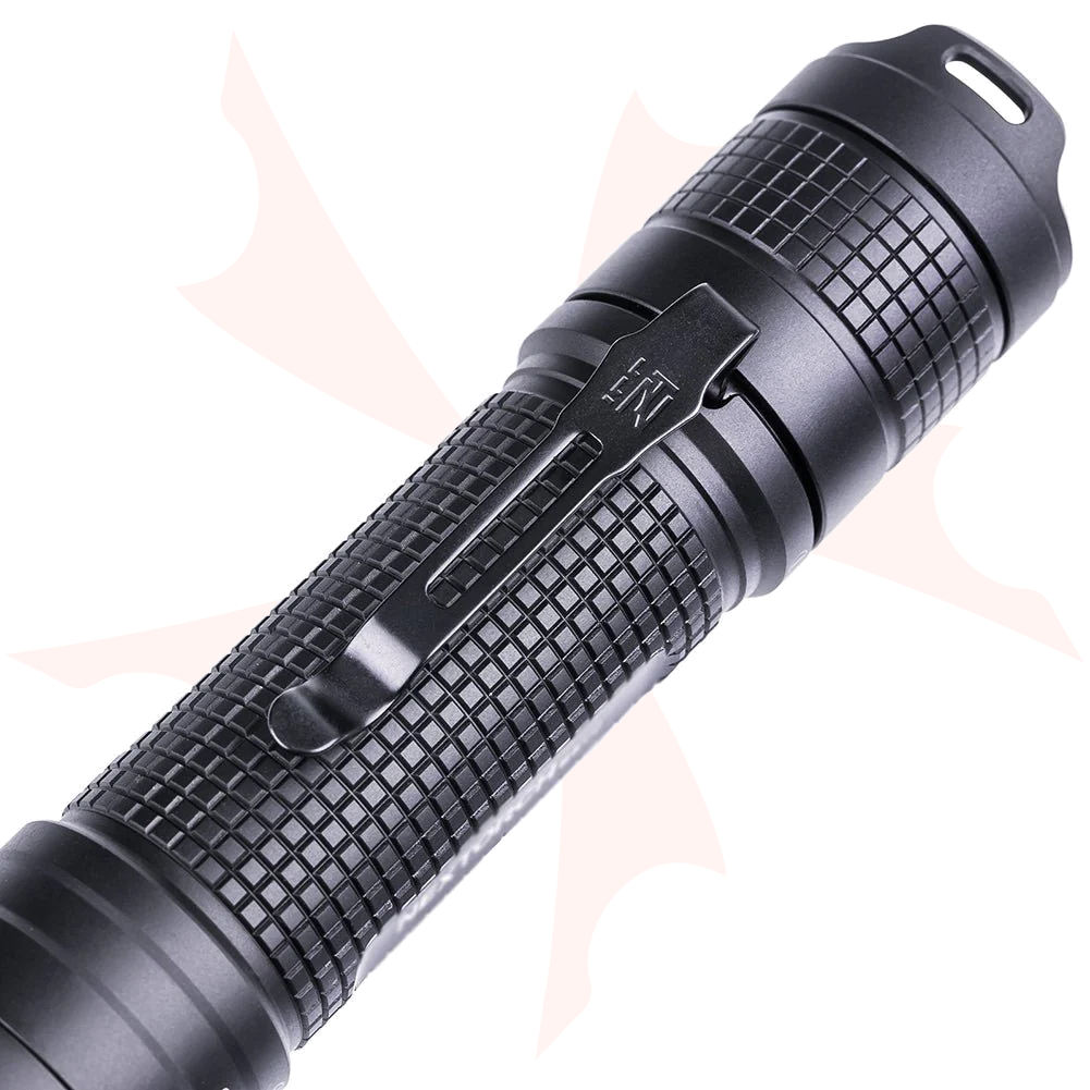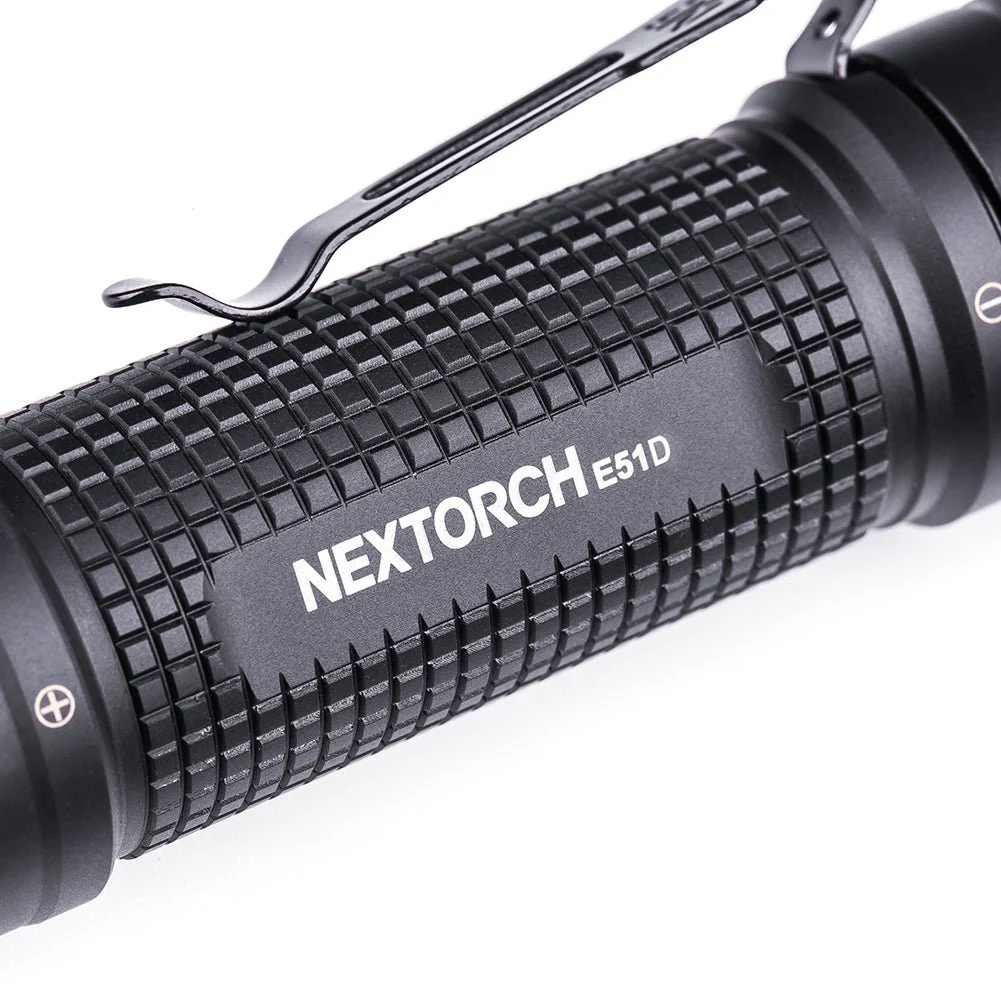 The NexTORCH E51D is a compact yet formidable EDC pocket flashlight built to deliver serious performance in a palm-sized package. Producing up to 2,100 lumens with a focused beam reaching 275 meters, it provides dependable illumination for everyday carry, outdoor use, and emergency scenarios alike. The rugged aluminum body features a classic straight-profile design with a U-shaped tail that enhances grip, prevents accidental activation, and allows stable tail-standing when needed. USB-C direct charging and a clear LED battery indicator minimize downtime, while a detachable pocket clip and lanyard offer flexible carry options. Rated IPX8 waterproof and tested for 2-meter impact resistance, the E51D is a reliable, no-nonsense light engineered to perform wherever your day, or night, takes you.