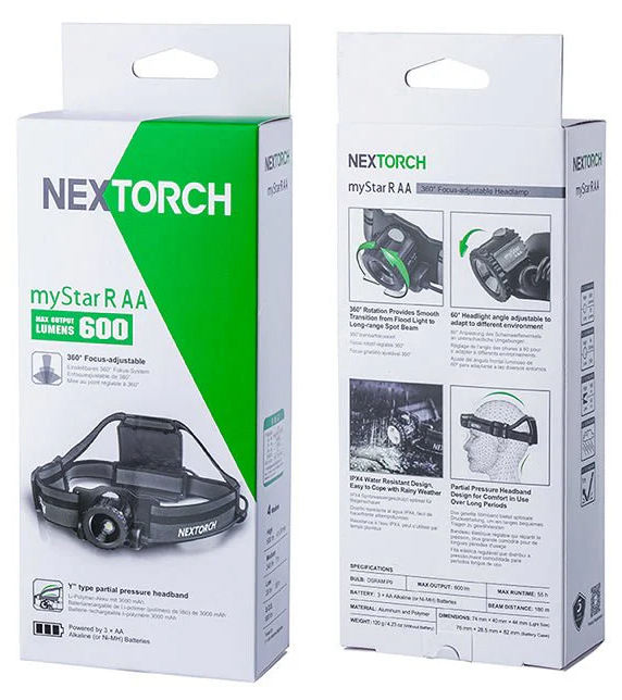 Designed with long-term wear in mind, the myStar R features multi-angle adjustment up to 60°, keeping the beam precisely aimed as you move. The IPX4 water-resistant construction stands up to splashes and light rain, making it well-suited for unpredictable weather. An ergonomically positioned rear battery pack and Y-type headband evenly distribute weight across the head, reducing pressure and increasing comfort during extended use. Whether you’re working outdoors, tackling professional tasks, or handling everyday needs, the NexTORCH myStar R provides reliable performance, adaptable lighting, and all-day comfort in one well-balanced headlamp.
