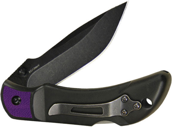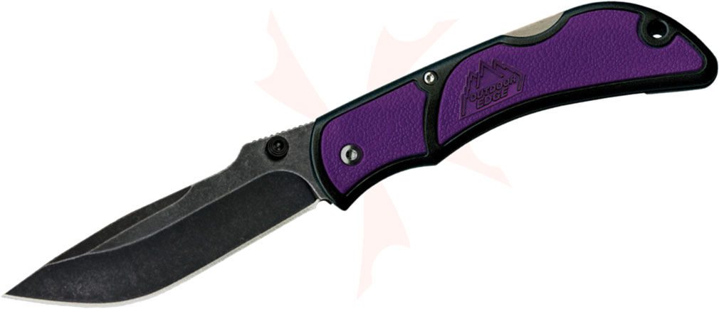 Outdoor Edge Small Chasm Folding Knife 2.5" Black Stonewash Plain Blade, Purple Zytel Handles, Lockback - CHP-25C