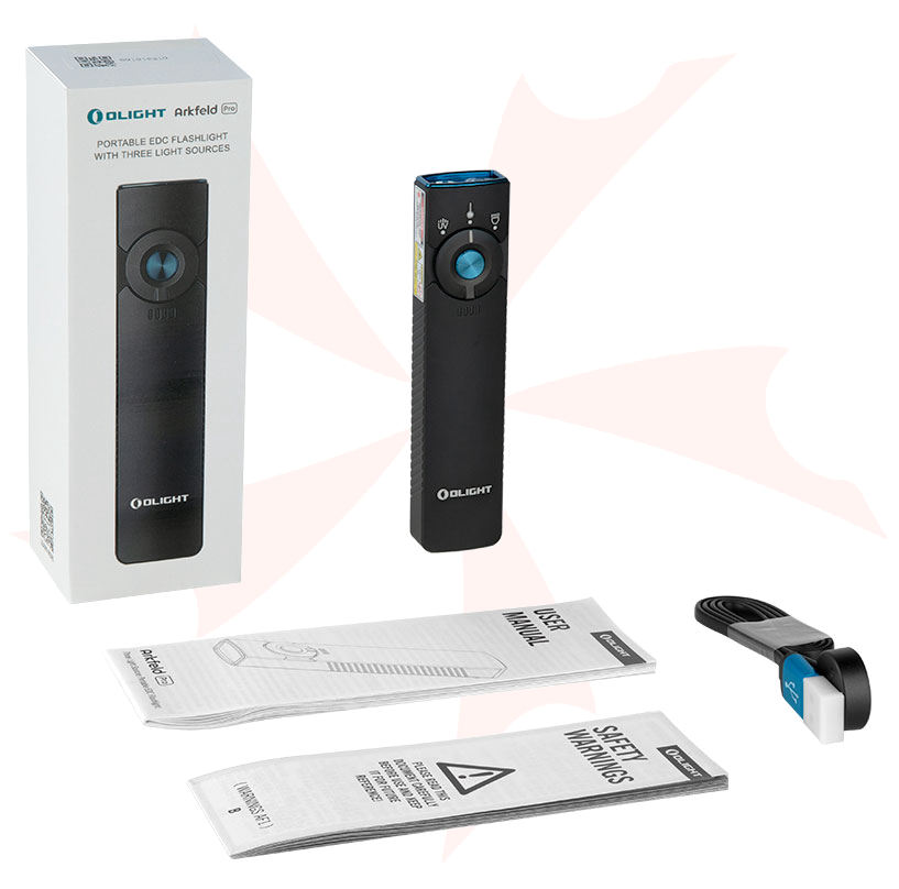 The Arkfeld Pro is the upgraded version of Olight's great portable EDC flashlight. It comes with the same 2 color temperatures, 5 brightness levels, and a memory function that allows you to select what you like with one click. The Arkfeld Pro features a 30% increase in brightness over the original with 1,300 lumens. The green laser built into the flashlight is a 5mW laser in Class 3R, making a good helper when making a presentation or amusing your pets. The creative switch design (central button and selector) is both practical and beautiful. Besides, the magnetic charging cable enables you to have it charged automatically. Last but not least, the flashlight is flat and features a clip, so it is easy to carry (3.92oz in weight and 0.63" in thickness) - It can be clamped onto your pockets and shirts even without noticing its existence. With great design plus multiple lighting functions, Arkfeld Pro should be your first choice when looking for an EDC flashlight to take everywhere.