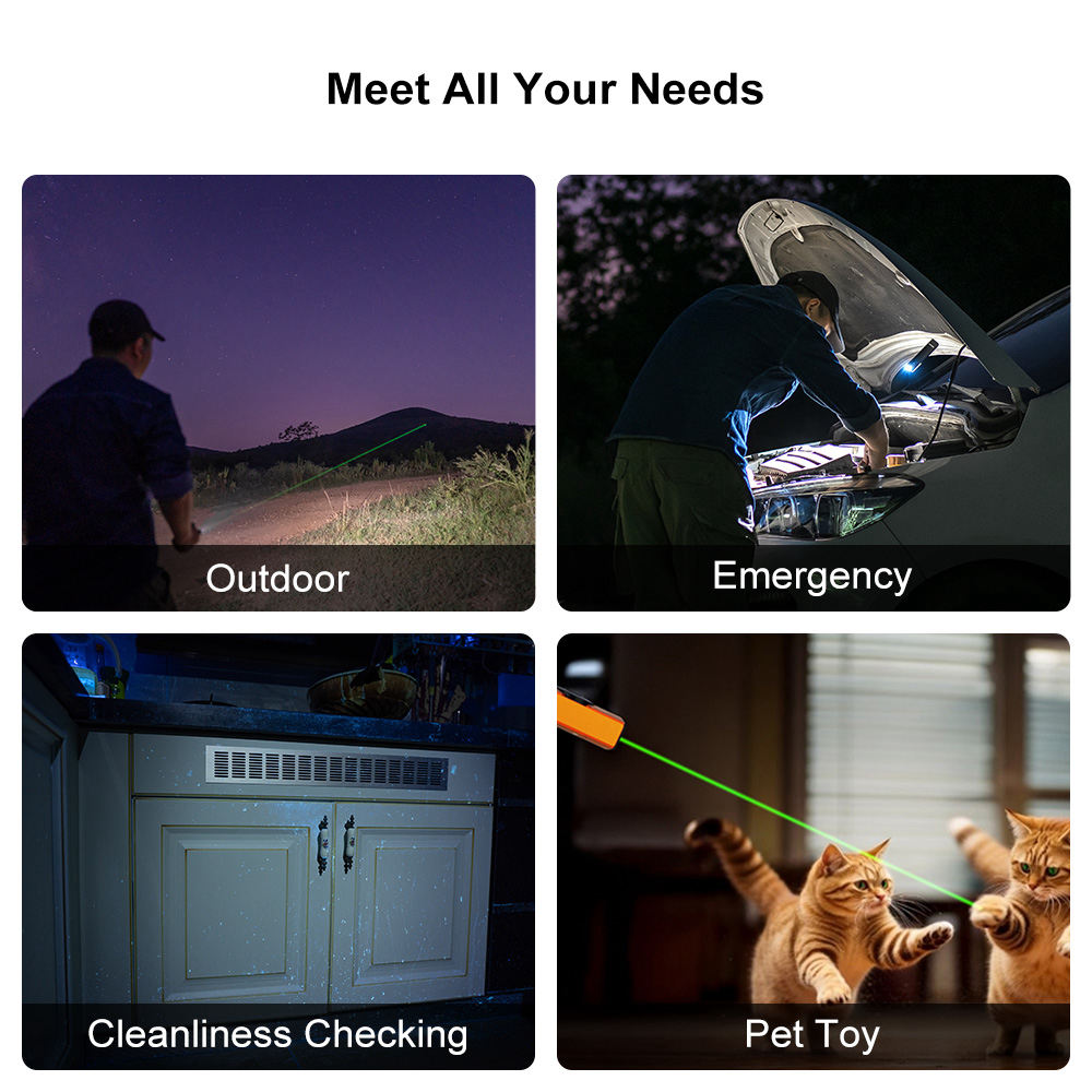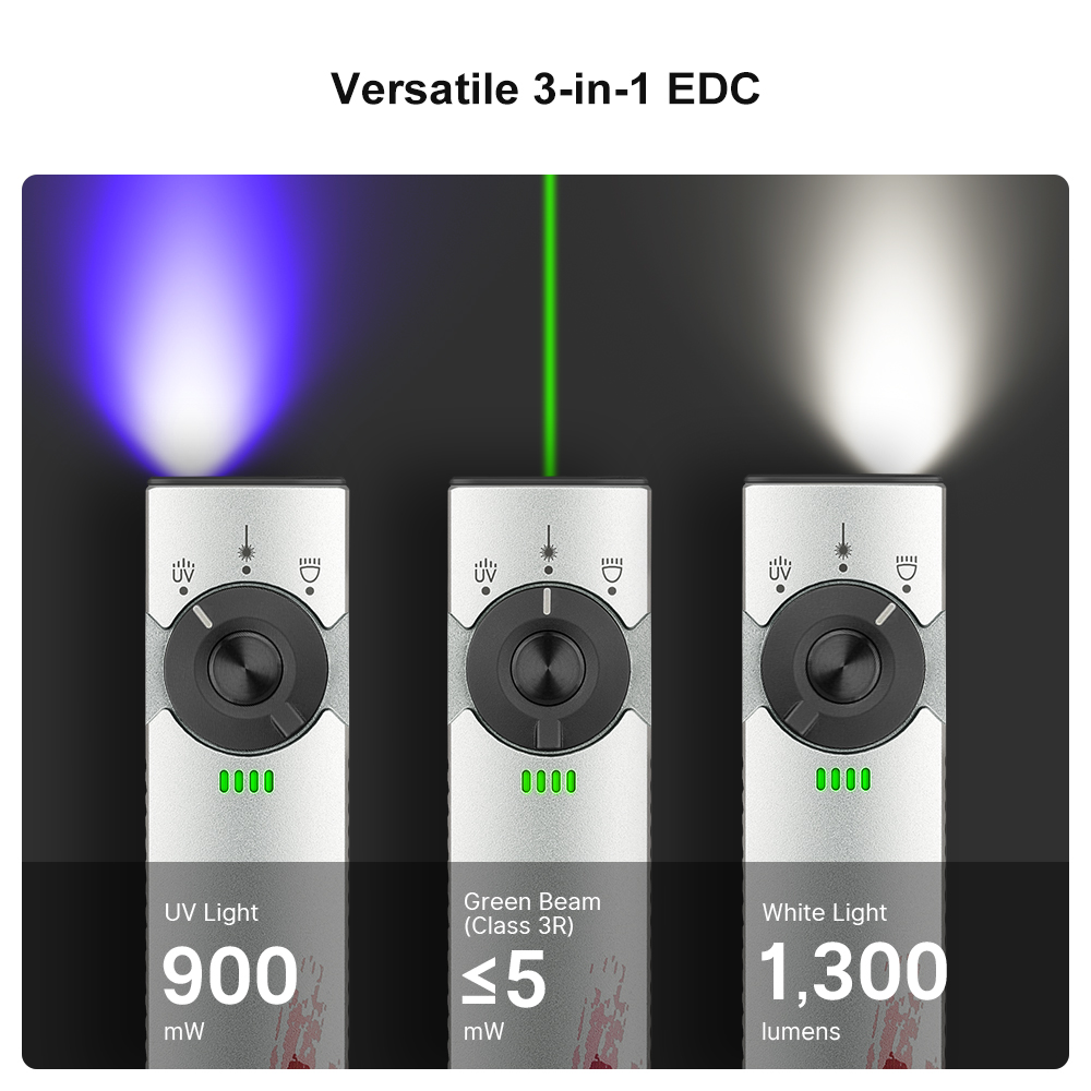 - Three-in-One Functionality: Combines white light, UV, and green laser in a single flashlight, offering versatility for a wide range of applications.
