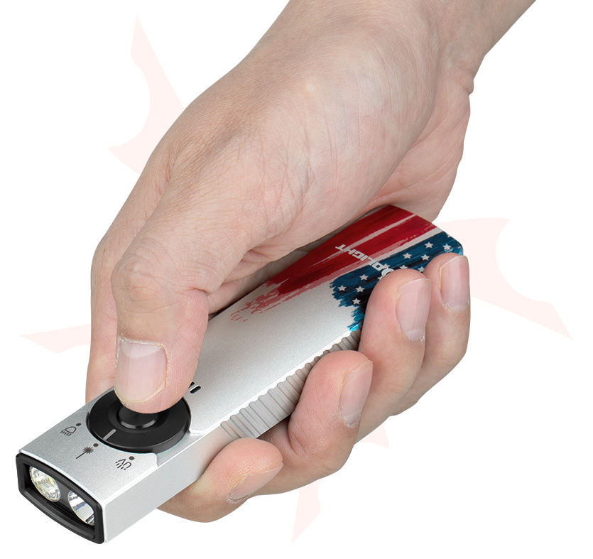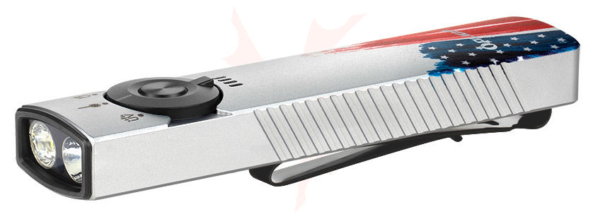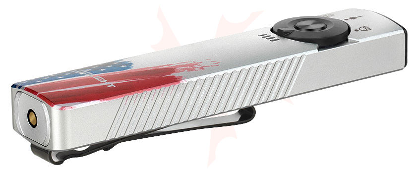 Olight Arkfeld Pro Rechargeable Cool White LED Flat Flashlight, Stars & Stripes Edition, 1300 Max Lumens - ARKFELD-PRO-C3R-S&SE