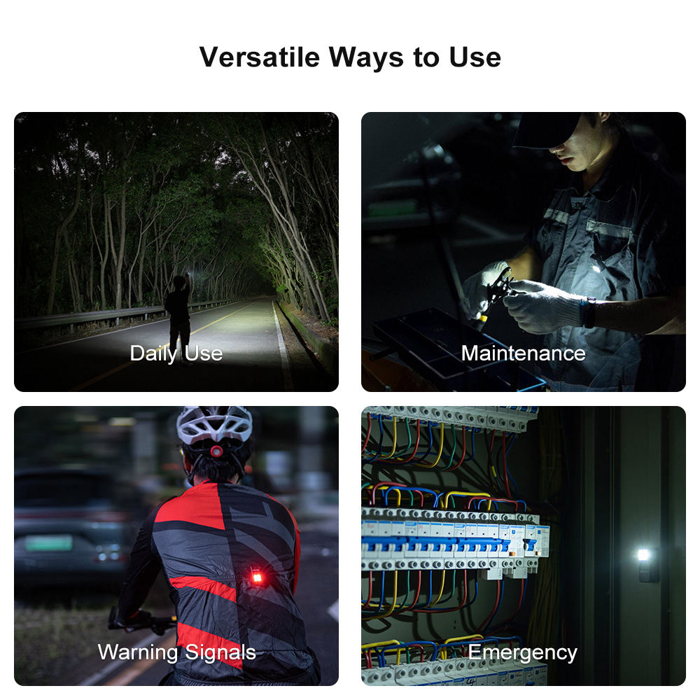 - Multiple Ways to Carry: Lightweight and compact light with a versatile clip enables users to clip, hang, or magnetically attach the light to steel objects. Suitable for hiking, providing light for photos, cycling, reading, and safety warnings.
