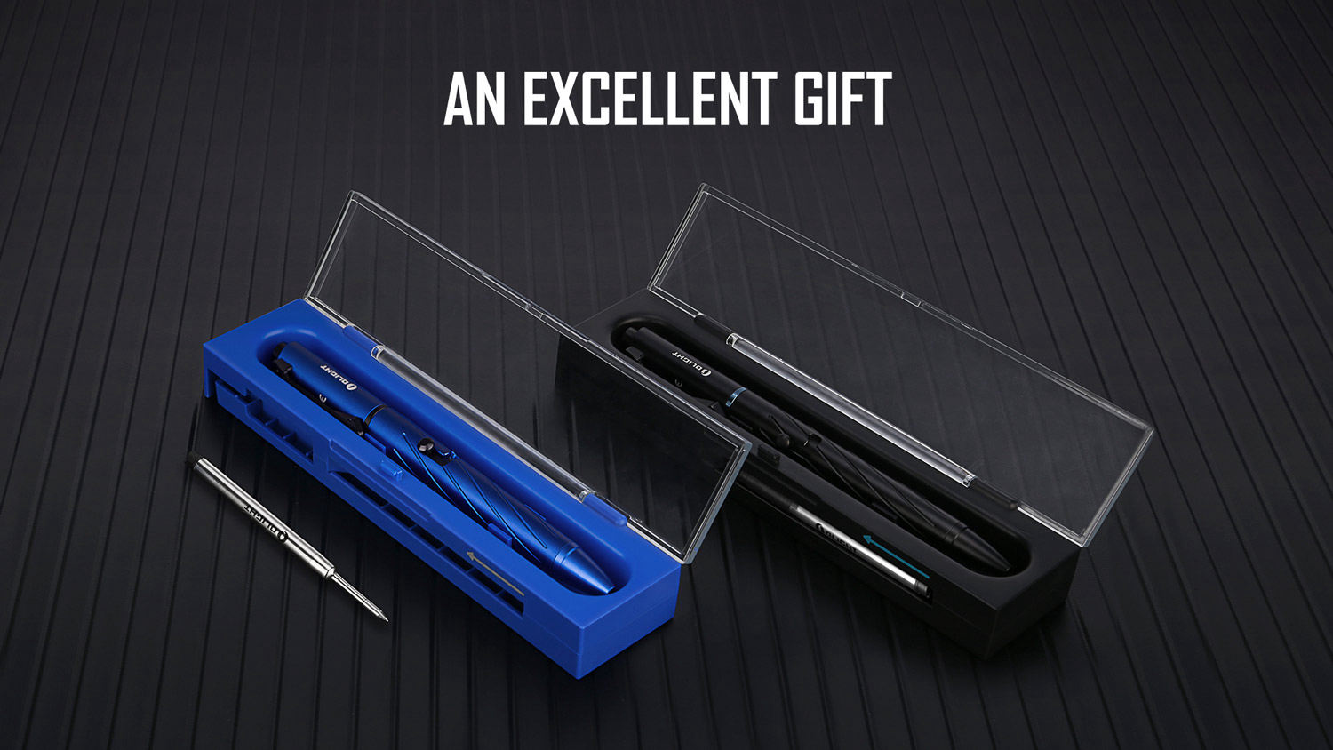The Open Pro is an EDC pen with both an LED light and a green pointer beam. It can be separated or used either as a pen or a flashlight. The pen body is longer and slimmer than the Open 2 for a more comfortable grip, while the LED light (5 to 120 lumens) is moved onto the pocket clip so that the light won’t be blocked when clipped to a pocket. At the tail of the LED part is also a green pointer, which is accurate for pointing and marking. The L-type bolt controls the pen tip, LED light, and green pointer. The built-in rechargeable lithium-polymer battery, popular USB-C interface, and simple charging indicator ensure worry-free charging. The Open Pro is durable and lightweight for everyday carry, adventuring, on journeys, on patrol, etc. Keep the Open Pro with you to light your instant inspiration.