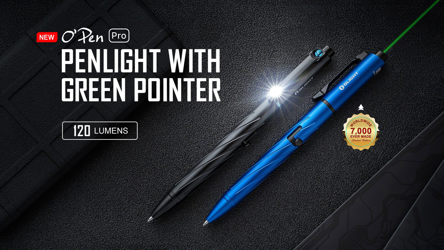 Olight Limited Edition O'Pen Pro Pen with Integrated Rechargeable LED Flashlight and Laser Pointer, Blue, 120 Max Lumens