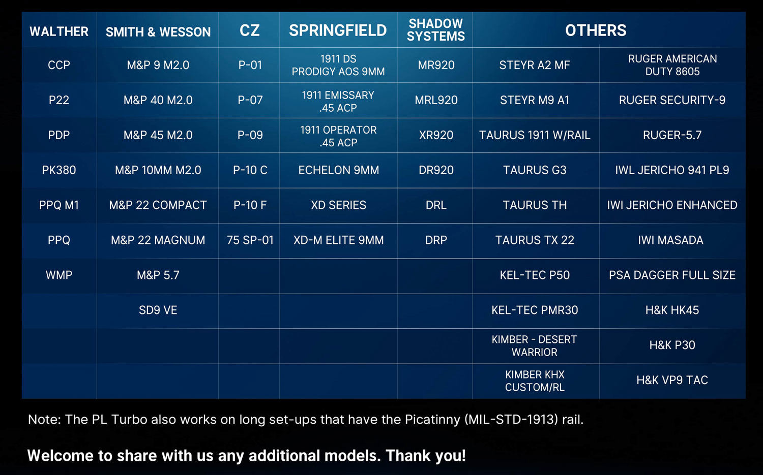 - 100 Compatible Builds: Thanks to the sliding block within its rail clamp, the PL Turbo fits a broad range of short and long set-ups with a Picatinny (MIL-STD-1913) rail or GL rail, a must-have one-for-all WML.